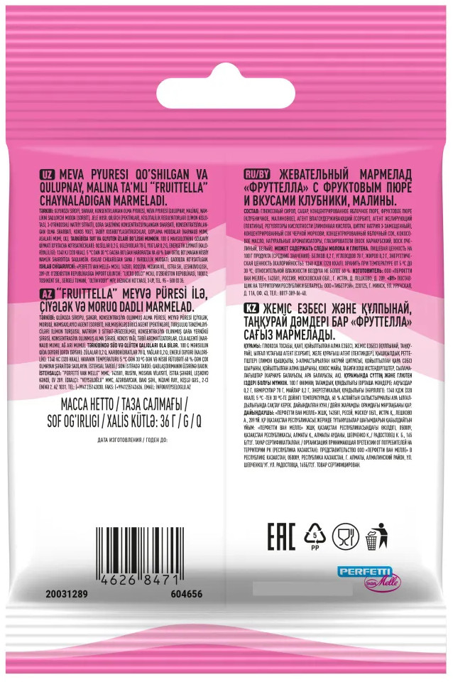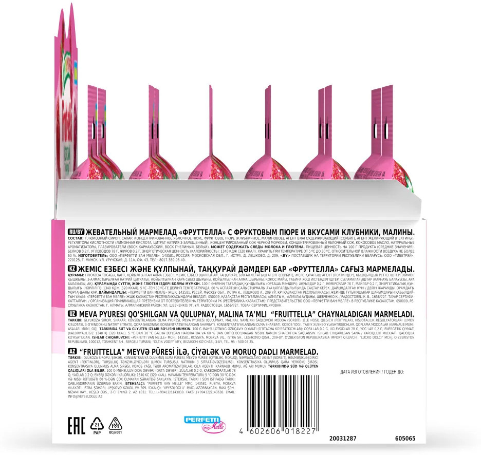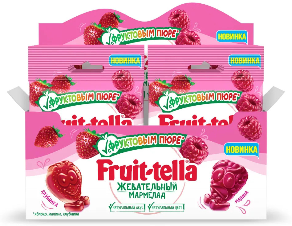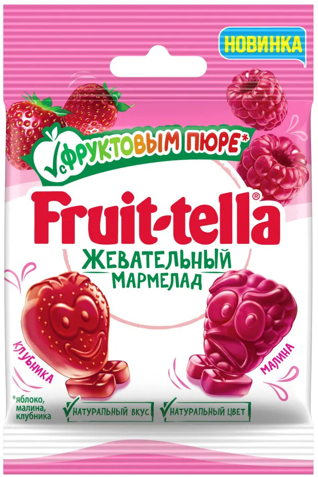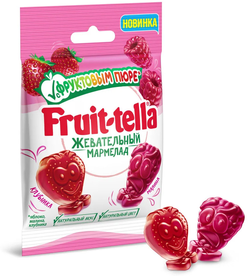 Fruittella Мармелад жевательный с фруктовым пюре и вкусами клубники, малины
