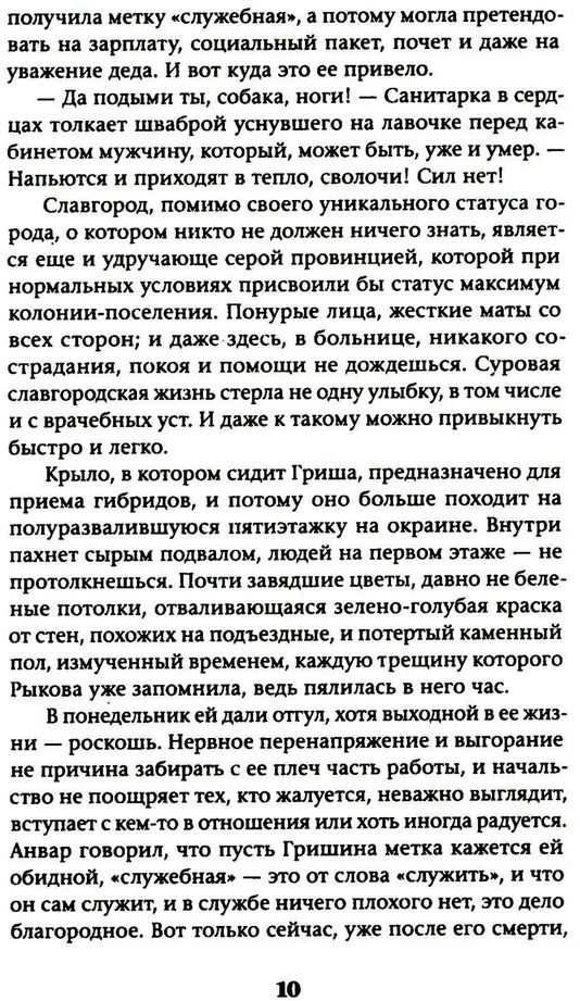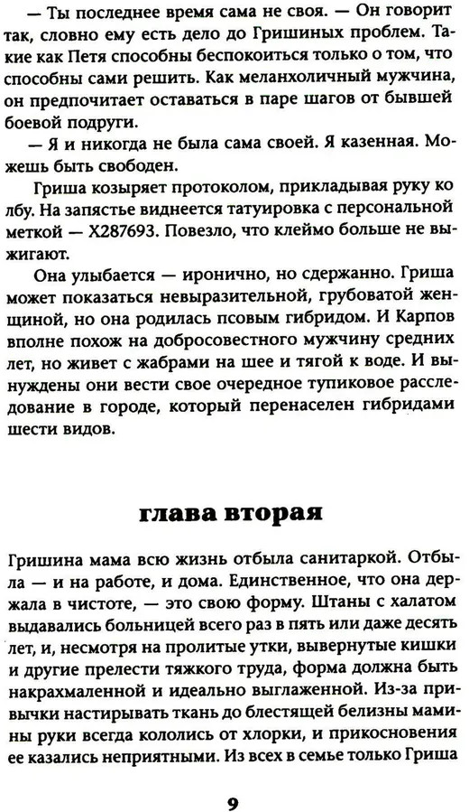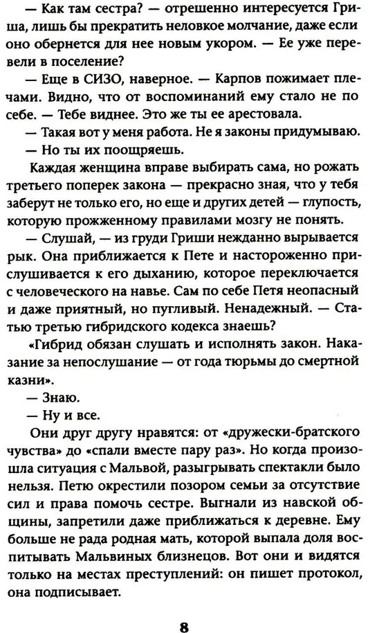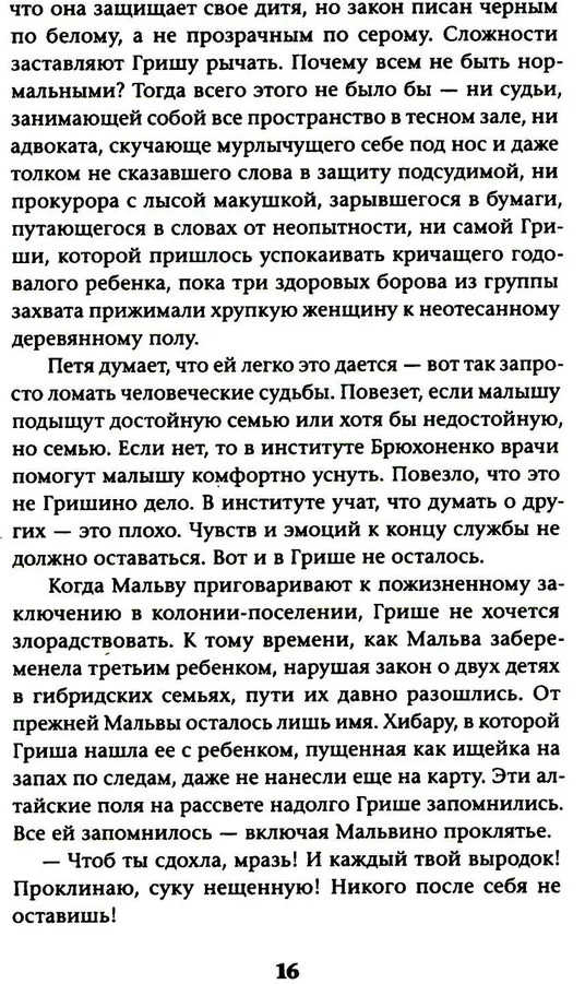 💳 Оплатить за товар можно при получении 🇰🇿 Есть бесплатная доставка по Казахстану от 1 дня 🎁 Копите бонусы с каждой покупки Серия: Обложка. Смысл Закрытый город, где советские устои до сих пор живы, таит внутри границ большую тайну. Его населяют гибриды — не-люди, чья природа исходит от животного начала. Они различны по повадкам и по внешним особенностям, но главное — ими правят инстинкты. Гриша Рыкова провела всю жизнь на собачьей милицейской службе. Она отказалась стать матерью, и по закону ее ждет добровольная эвтаназия. Готовясь покорно принять свою судьбу, она знакомится с революционеркой Ильяной Зильберман, которая не привыкла сдаваться так просто. Теперь целью Ильяны становится спасение Гриши от смерти, которой нельзя избежать — в городе, о котором нельзя говорить. |