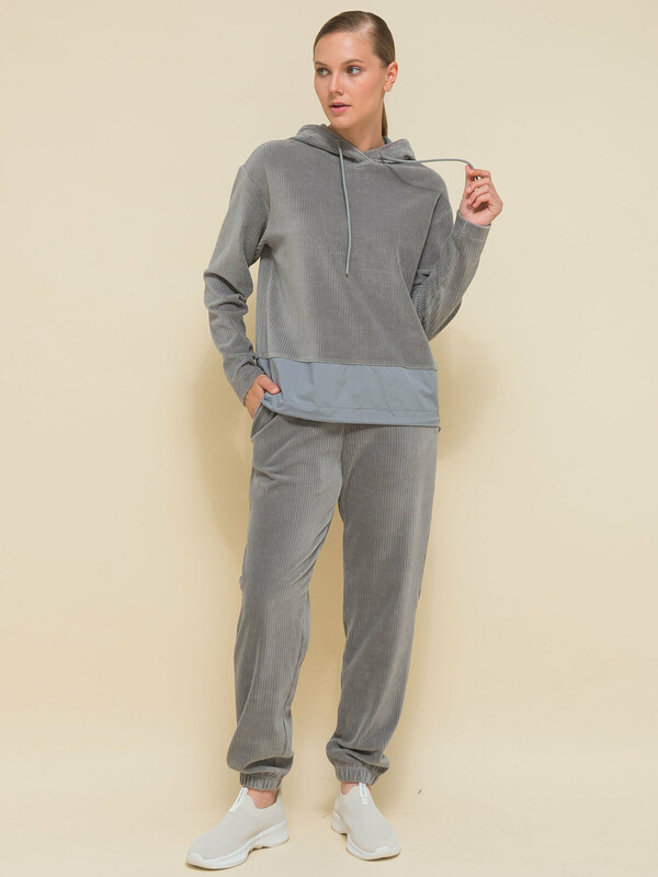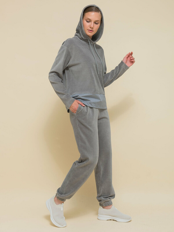 Взяла в комплект к таким же штанам. Заказала на примерку 48 и 50. Начала со своего 48-го (на ОГ96) - подошёл, поэтому 50-й даже не стала примерять, чтобы не портить кайф от распаковки новой вещи другому покупателю. Поскольку нижняя часть с нейлоновой вставкой не тянется, при выборе размера опять же советую ориентироваться на объем бедер. Но ОБ100 эта вставка в 48-м "легла" на бедра со свободой облегания. На ОБ больше будет либо впритык, либо мала. По итогу вышел отличный костюм на межсезонье и прохладные вечера.
