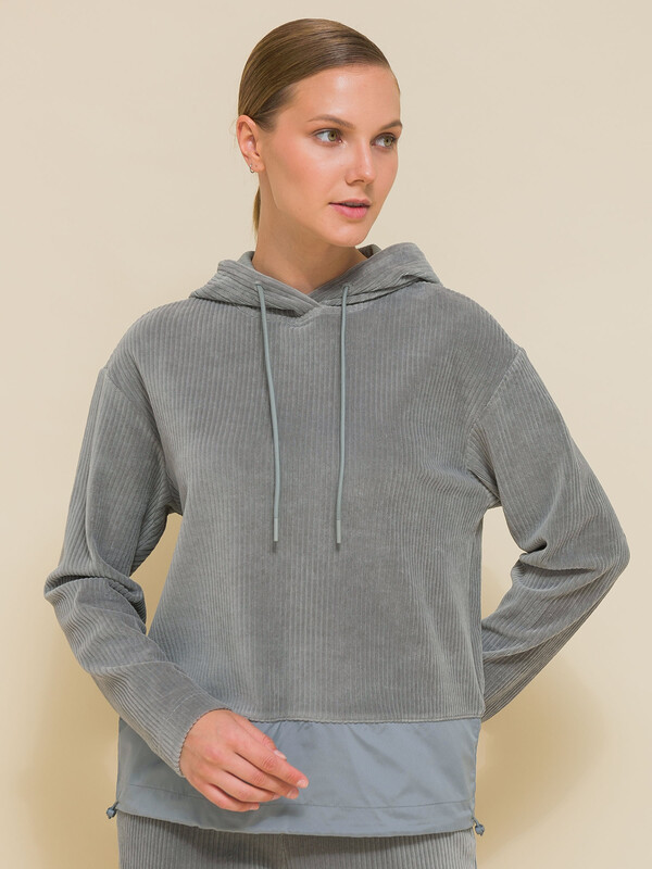 Взяла в комплект к таким же штанам. Заказала на примерку 48 и 50. Начала со своего 48-го (на ОГ96) - подошёл, поэтому 50-й даже не стала примерять, чтобы не портить кайф от распаковки новой вещи другому покупателю. Поскольку нижняя часть с нейлоновой вставкой не тянется, при выборе размера опять же советую ориентироваться на объем бедер. Но ОБ100 эта вставка в 48-м "легла" на бедра со свободой облегания. На ОБ больше будет либо впритык, либо мала. По итогу вышел отличный костюм на межсезонье и прохладные вечера.