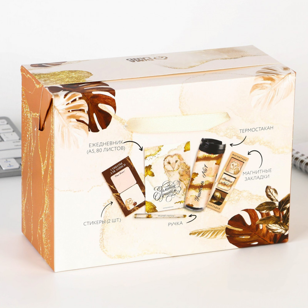 💳 Оплатить за товар можно при получении 🇰🇿 Есть бесплатная доставка по Казахстану 🎁 Копите бонусы с каждой покупки Серия: Учитель Порадуйте своего любимого учителя таким душевным подарком! Он будет уместен и на день рождения, на День знаний, выпускной, просто в знак благодарности за заботу о вашем ребенке! Набор «Золотому учителю» — это оригинальный и полезный подарок, который будет использоваться в повседневной жизни. Небольшой подарок, который привнесет частичку праздника и хорошее настроение. Данный набор станет прекрасной альтернативой привычным цветам или дополнением к ним! |