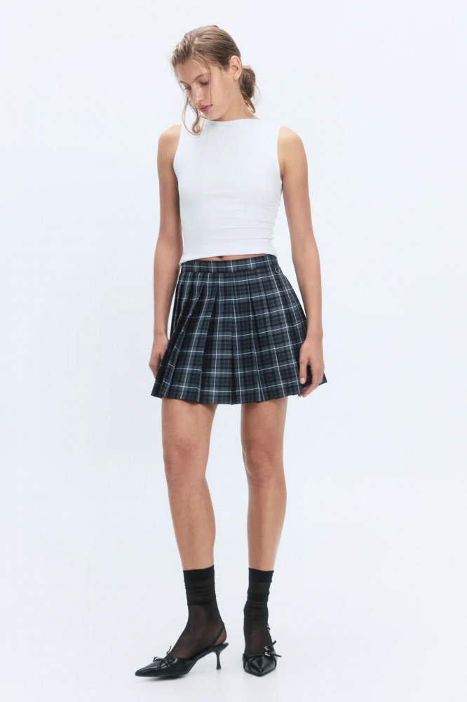 Клетчатая мини-юбка в стиле preppy для милых и женственных луков с блузками или рубашками. Короткая юбка в клетку идеально сочетается как с однотонным верхом в более строгих образах, так и с ярким верхом в расслабленных повседневных луках. Идеальная клетчатая юбка на 1 сентября в сочетании с гольфами и балетками мэри джейн. Плиссированная мини-юбка в клетку станет также основой трендовых луков librarian core в сочетании с вязаными свитерами и небрежным пучком на голове.