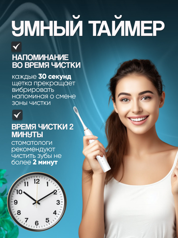 Влагозащита IPХ7 позволяет брать электро щетку в душ и ванну. Аккумуляторный прибор работает до 30 дней без проводов – идеально для дома, дорожных и походных условий. Кабель USB подключается к ноутбуку, ПК и power bank. Звуковая электрощетка – гаджет, который подходит взрослому и ребенку (допустимо использовать как детскую щетку с 6 лет). Умная щетка – отличный мужской и женский подарок на Новый Год, День Рождения, 23 и 14 февраля, 8 марта! Перед отгрузкой товар проверяется на брак.