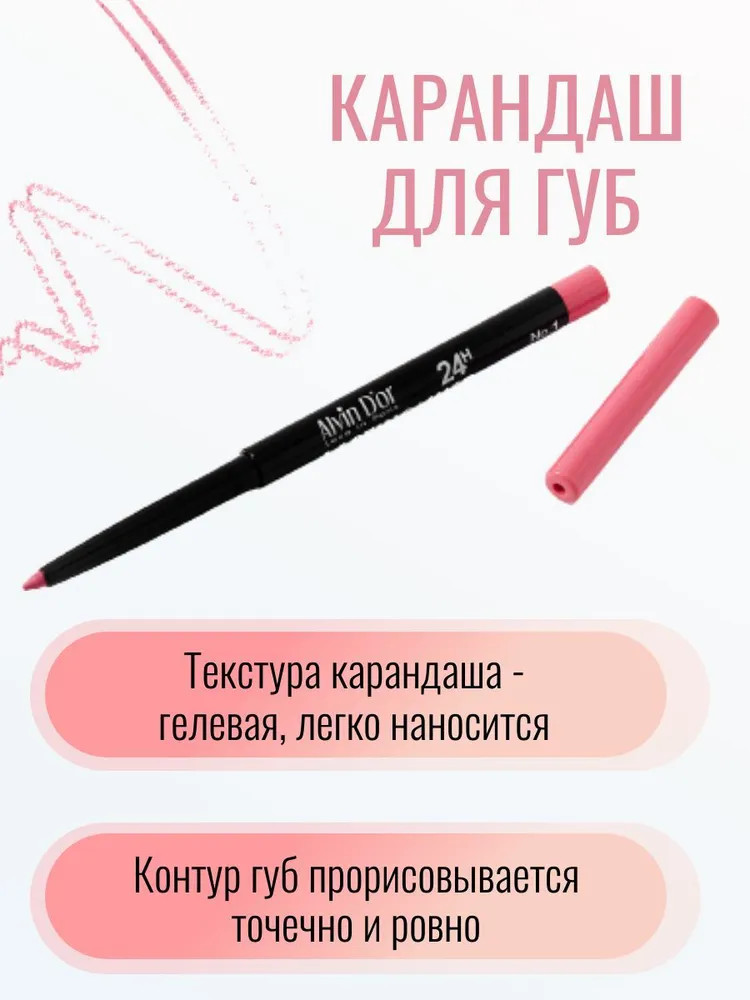 Alvin D'or Карандаш для губ гелевый водостойкий «Lasting Liner», тон 01 Розовый