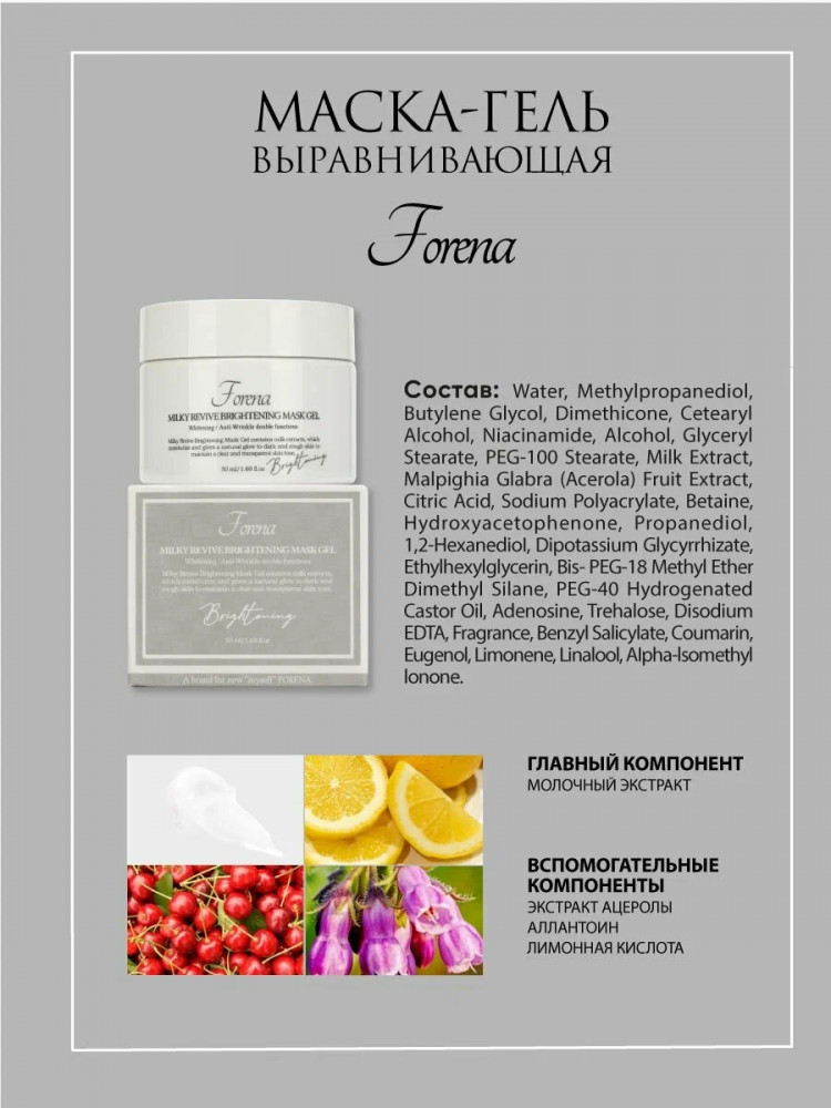 Forena Маска для лица с молочными протеинами «Milky Revive Brightening Mask Gel»