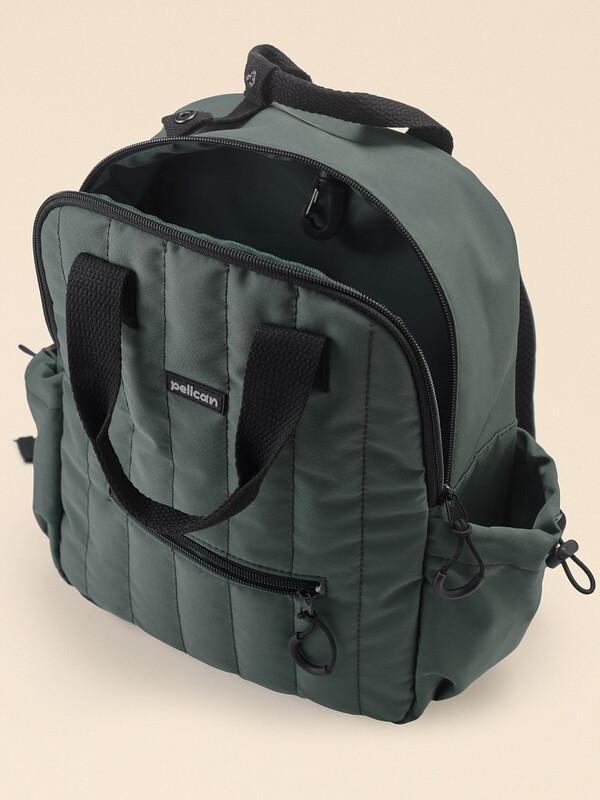Детский рюкзак из стильного матового стеганого материала. В составе ткани 100% полиэстер — детская сумка прочная, лёгкая и не теряет цвет в течение долгого времени. Внутри рюкзака скрывается одно большое отделение, дополнительный карман и несколько маленьких кармашков, в которые легко поместятся все необходимые ребёнку вещи. Плюс пластиковый карабин, на который можно повесить ключи. Снаружи центральный карман на молнии, а также два объёмных боковых кармана, закрываются на шнурки-фиксаторы. Рюкзак модный станет незаменимым компаньоном во время прогулок, путешествий, занятий в детском саду или внеклассных занятий. Крупные пуллеры на молниях позволят вашему малышу без проблем застёгивать и расстёгивать замки, даже когда на руках варежки или перчатки. Рюкзак для детей дополнен регулируемыми по длине плечевыми лямками, которые гарантируют, что рюкзак будет идеально сидеть, независимо от роста ребенка. Ручки сумки можно легко зафиксировать друг с другом с помощью кнопки, обеспечивая комфорт во время движения. Рюкзак зеленый универсален и подойдет как мальчику, так и девочке.