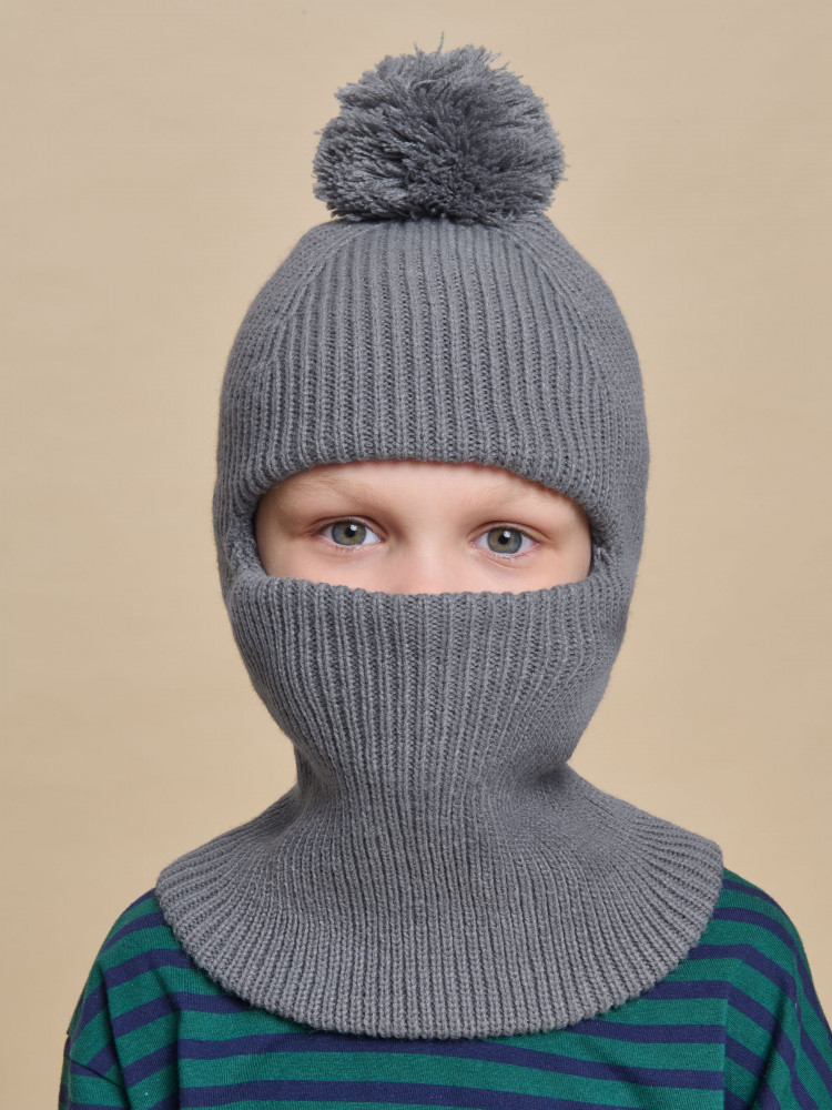 Уютная и стильная шапка балаклава — один из самых трендовых головных уборов сезона! Модная и практичная шапка шлем с помпоном подходит и девочкам, и мальчикам. Балаклава легко надевается и сочетает в себе одновременно шапку и шарф — время сборов на улицу значительно сокращается. Ребёнку такую шапку просто и быстро надевать и снимать. Шапка выполнена из мягкого акрила — она эластичная, тёплая и очень комфортная. Балаклаву легко стирать, она не растягивается и не мнётся. Прекрасные терморегулирующие свойства помогают сохранять тепло даже при низких температурах. Вязаная шапка двойная, плотная. Благодаря вязке и вытачкам в верхней части изделие имеет форму, которая повторяет контуры головы — она плотно прилегает к голове ребёнка, защищает лицо от холода. Помпон выполнен из ниток того же цвета, что и сам головной убор. Отличный выбор для прогулок и игр на воздухе.