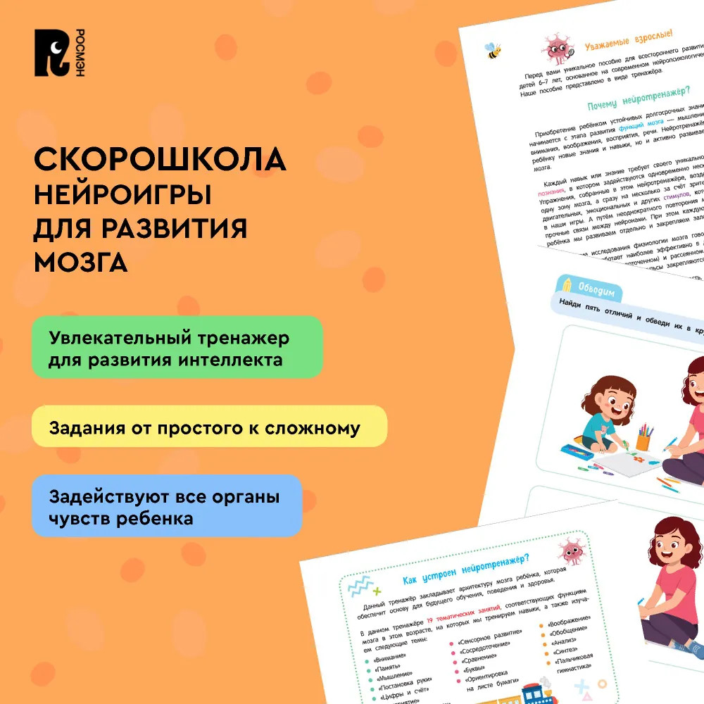 💳 Оплатить за товар можно при получении 🇰🇿 Есть бесплатная доставка по Казахстану от 1 дня 🎁 Копите бонусы с каждой покупки Серия: Скорошкола В этом пособии собраны нейроупражнения для детей 6-7 лет. С их помощью ребенок освоит азы таких важных навыков и знаний, как сосредоточение, мышление, речь, классификация, счет, память, внимание, восприятие, сенсорное развитие, части тела человека, постановка руки. |