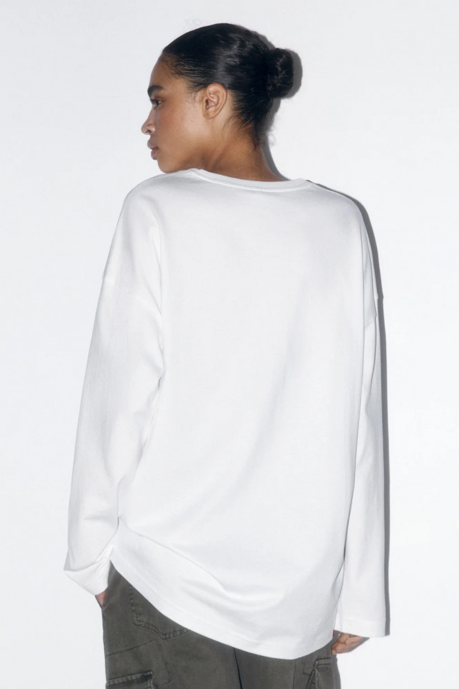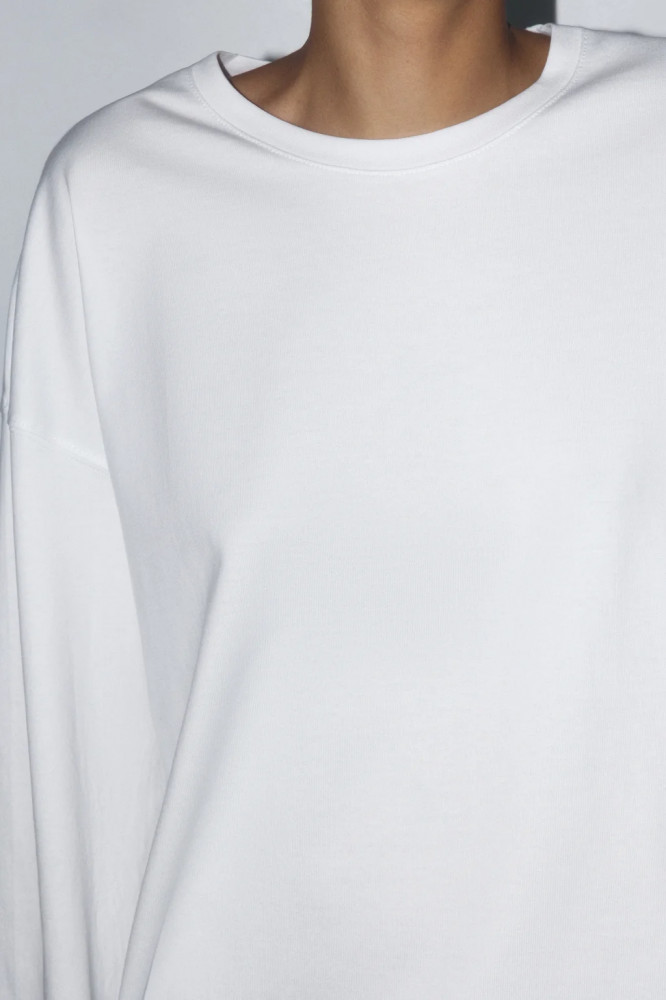 Женский лонгслив свободного прямого кроя из мягкой, дышащей ткани на основе хлопка с гладкой трикотажной фактурой. Классический круглый вырез горловины в мелкий рубчик. Длинные свободные рукава с прямыми манжетами и спущенной линией плеча. Прямой нижний край без разрезов и декоративных элементов. Базовые однотонные расцветки для любого образа и настроения. Легкая хлопковая футболка с длинными рукавами для суперудобных кэжуал-луков на любой случай жизни. Разбавь свои повседневные, спортивные, офисные, школьные или уличные аутфиты стильным базовым оверсайз-лонгсливом, который станет неотъемлемой частью твоего гардероба благодаря его универсальности. Свободный хлопковый джемпер из трикотажа для расслабленных повседневных луков, в которых тебе будет максимально комфортно как в жаркую, так и в прохладную погоду