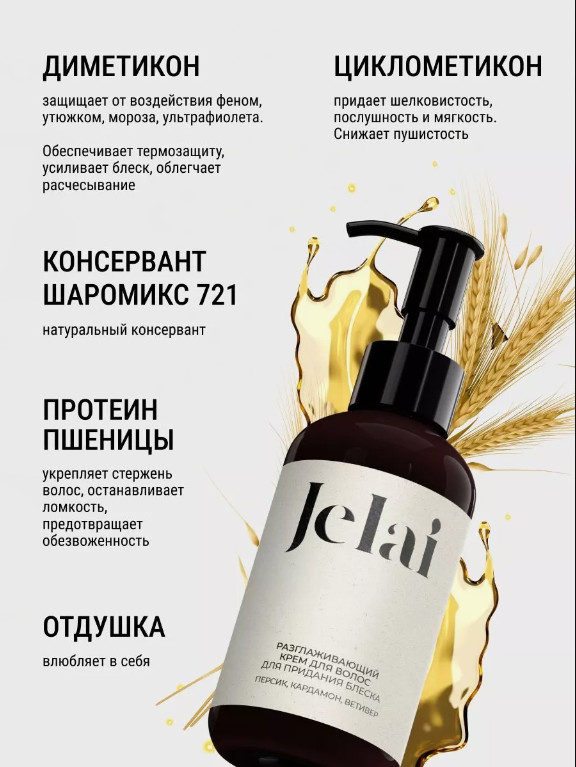 Jelai Крем для волос парфюмированный для придания блеска разглаживающий «Bitter Peach»