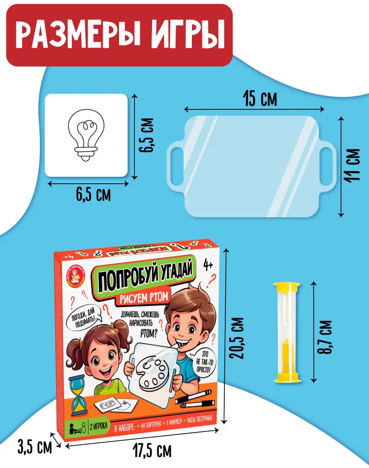 💳 Оплатить за товар можно при получении 🇰🇿 Есть бесплатная доставка по Казахстану от 1 дня 🎁 Копите бонусы с каждой покупки Развивающая настольная игра «Попробуй угадай» — игра, где нужно рисовать, держа фломастер в зубах. Экран для рисования многоразовый, а маркеры легко стираются. Стань чемпионом по рисованию ртом! Развивающая настольная игра «Попробуй угадай» — развивает фантазию, логическое мышление и креативность. |
