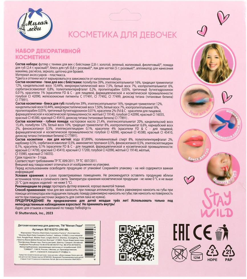 💳 Оплатить за товар можно при получении 🇰🇿 Есть бесплатная доставка по Казахстану от 1 дня 🎁 Копите бонусы с каждой покупки Набор косметики для девочек ТМ «Милая леди» непременно понравится маленькой моднице. Девочки в любом возрасте хотят быть красивыми. Специально для юных модниц был разработан этот набор, состоящий из теней для век, лака для ногтей, помады и блеска для губ. Маленькая принцесса обязательно оценит красочные цвета и модную упаковку. Развивайте чувство стиля и вкуса, учите девочку создавать свой неповторимый образ вместе с косметикой ТМ «Милая леди». |
