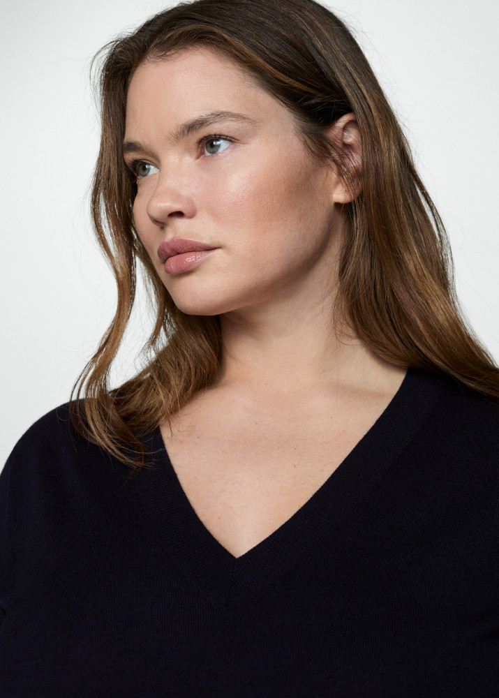 Тонкий трикотаж. Края связаны резинкой. V-образный вырез горловины. Длинные рукава. Доступно в Plus. Образы для офиса. Рост модели: 179 см, размер: S.