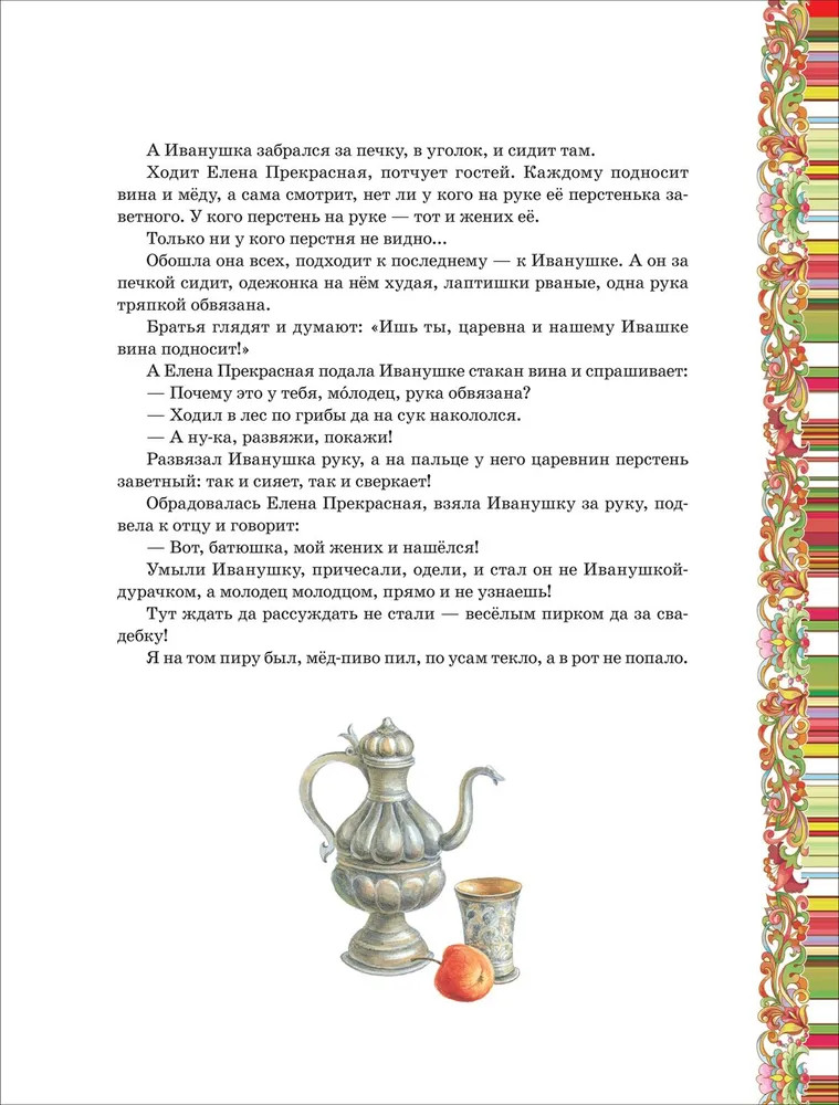 💳 Оплатить за товар можно при получении 🇰🇿 Есть бесплатная доставка по Казахстану 🎁 Копите бонусы с каждой покупки В книгу вошли известные русские волшебные сказки: «По щучьему веленью», «Сивка-бурка», «Царевна-лягушка», «Василиса Прекрасная» и многие другие. Тексты печатаются в классической обработке А. Афанасьева, М. Булатова, И. Карнауховой и А. Толстого. Книга с яркими и стильными иллюстрациями А. Лебедева и Е. Петровой станет отличным подарком для всех любителей сказок. |