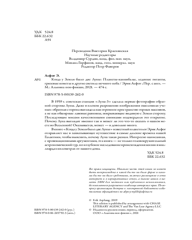 💳 Оплатить за товар можно при получении 🇰🇿 Есть бесплатная доставка по Казахстану от 1 дня 🎁 Копите бонусы с каждой покупки Серия: Alpina Popular Science В 1959 г. советская станция «Луна-3» сделала первые фотографии обратной стороны Луны. Даже в плохом разрешении изображения ошеломили ученых: обратная сторона выглядела как огромное пространство горных массивов, а не как обширные лавовые равнины, покрывающие видимую с Земли сторону. Последующие миссии качественными снимками подтвердили это открытие. Почему Луна выглядит именно так и может ли это что то сказать о нашем месте во Вселенной? Оказывается, может — и довольно много. |