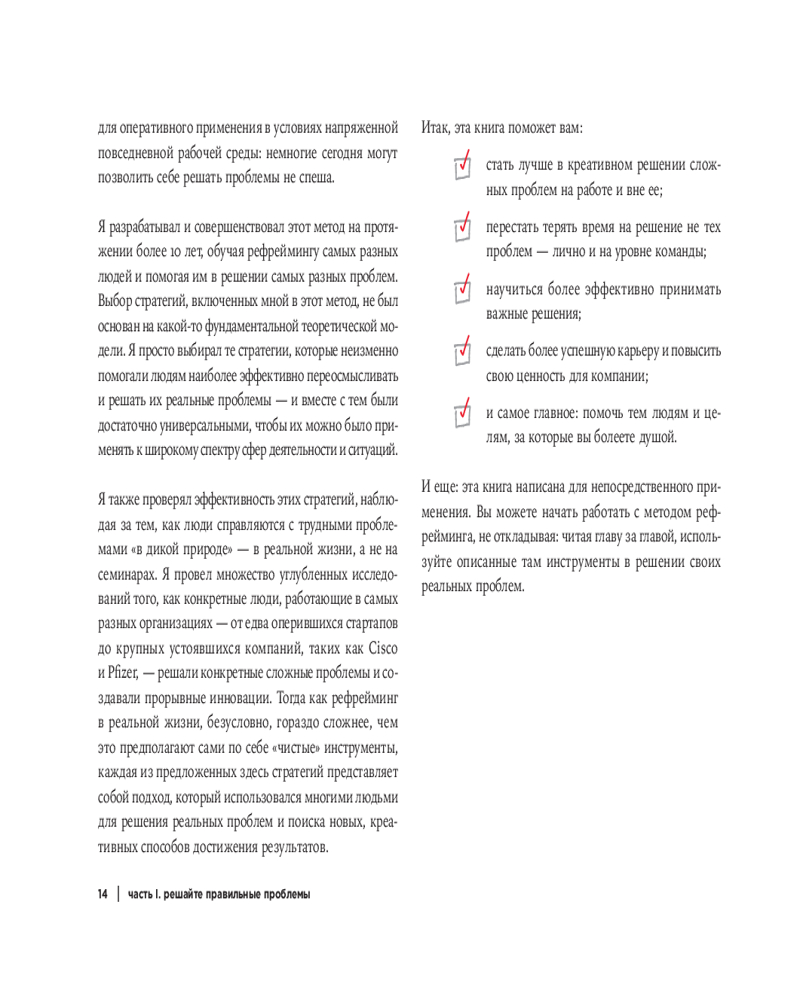 💳 Оплатить за товар можно при получении 🇰🇿 Есть бесплатная доставка по Казахстану от 1 дня 🎁 Копите бонусы с каждой покупки Серия: Альпина. Саморазвитие Всем доводилось сталкиваться с особенно сложной задачей, решение которой никак не давалось. Но что, если мы просто смотрели на нее не с той стороны или вовсе пытались решить не ту проблему? Можно штурмовать ворота неприступного замка, затрачивая на бесплодные попытки время и силы, а можно остановиться и внезапно увидеть обходной путь. Томас Веделл-Веделлсборг, эксперт в области решения проблем и внедрения изменений, рассказывает о том, как справляться с проблемами при помощи рефрейминга — фундаментального когнитивного навыка, пригождающегося в самых разных жизненных ситуациях. Прочитав его книгу, вы научитесь вовремя изменять условия задачи, смотреть на сложные проблемы под новым углом и находить для них нетривиальные, но верные решения. Материал книги отлично структурирован, снабжен яркими примерами и запоминающимися иллюстрациями. |