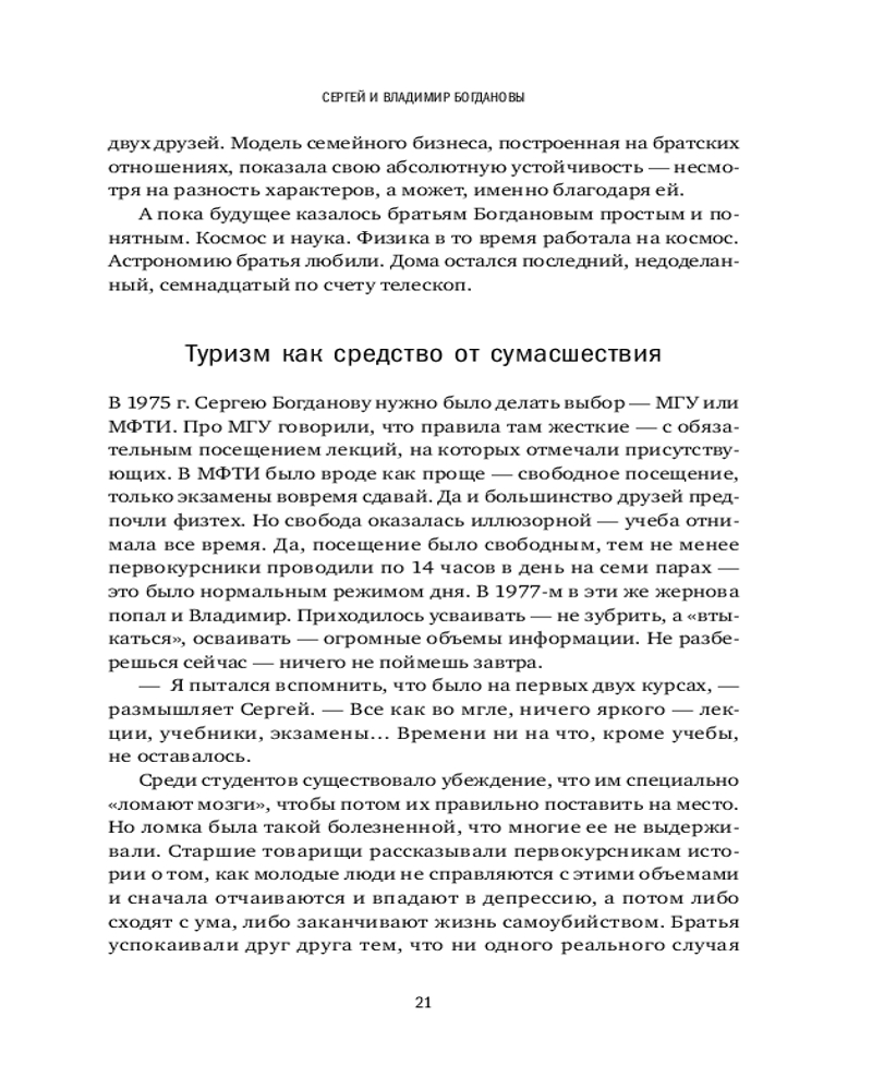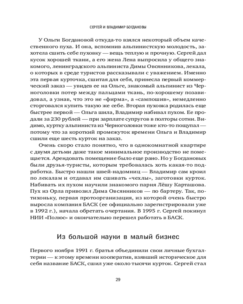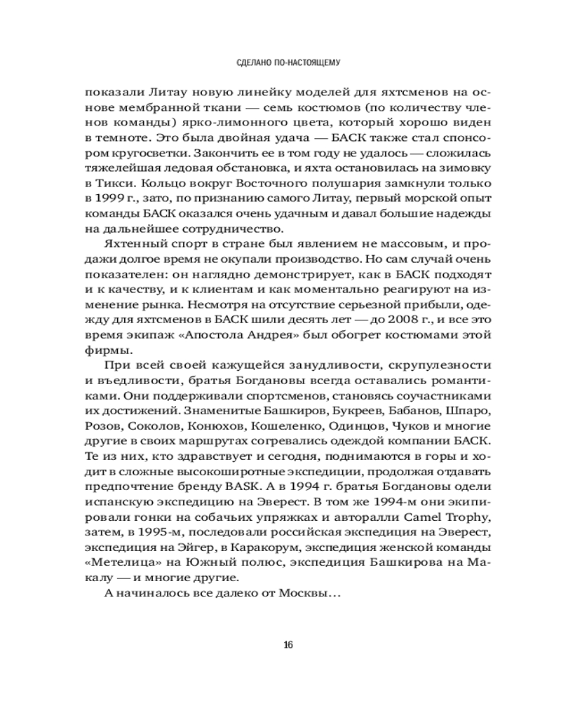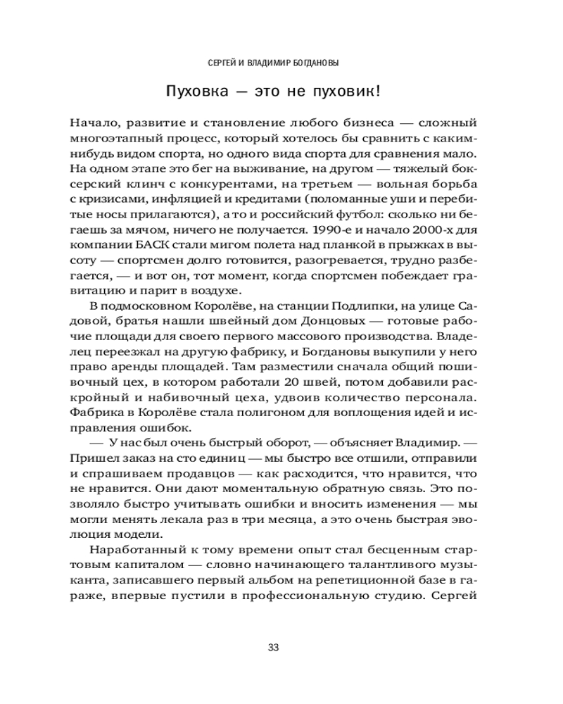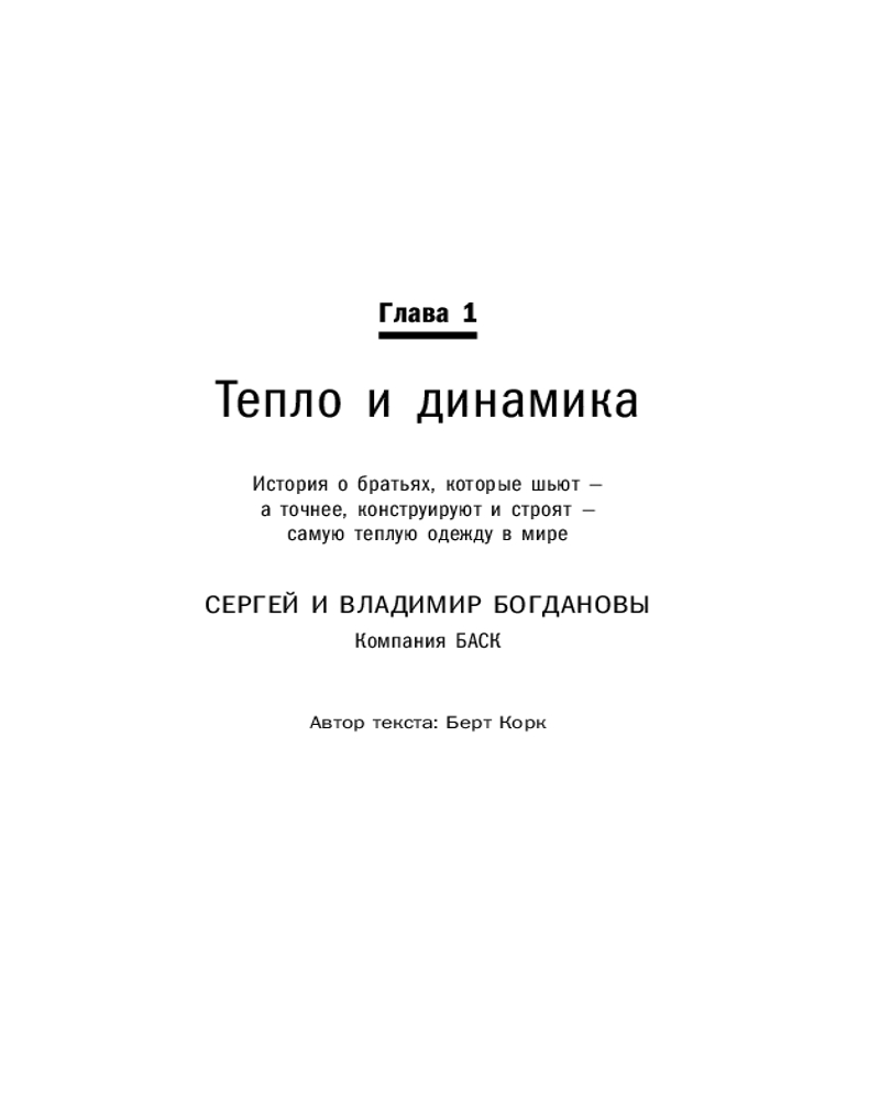 Вы узнаете, как братья Богдановы производят самую теплую одежду в мире, как Юрий Алексеев создает дворцовые бани, как Дмитрий Клименков возводит продажу плинтусов в ранг искусства, как «Лаборатория «Однажды» пишет захватывающие предпринимательские истории и как издательская группа «Альпина» выпускает книги, которые хочется перечитывать.