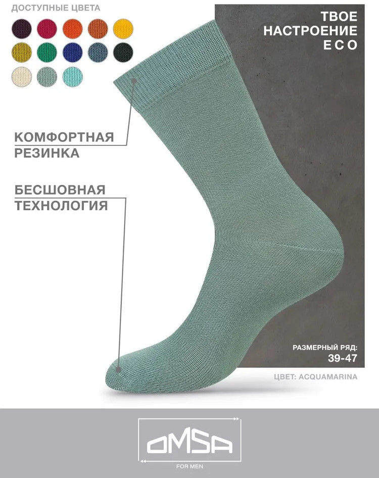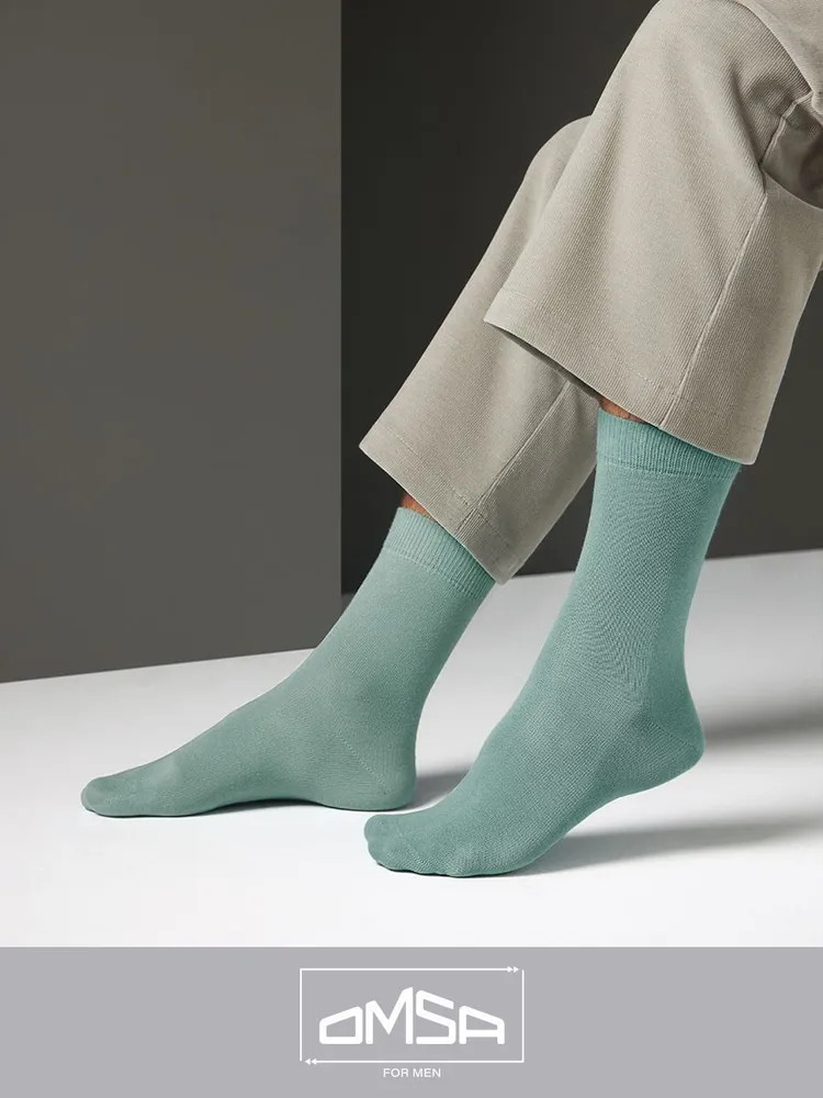 Мужские гладкие однородные классические всесезонные носки из хлопка с добавлением полиамида и эластана. Линия разработана специально для мужчин, ценящих доступное качество и функциональность и невысокую стоимость. Мужские носки средней длины (пол голени). Комфортная широкая резинка обеспечивает нормальную посадку и удержание без сдавливания.