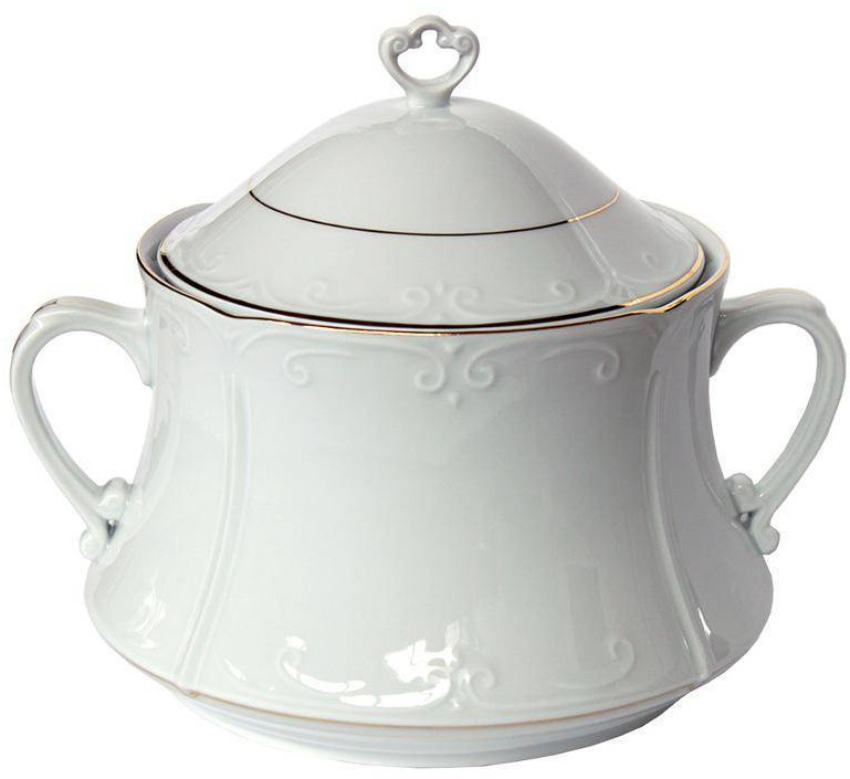Cmielow Супник «Отводка золото»В данный момент этот товар отсутствует в продаже. Возможно, у нас найдется аналогичный или похожий товар здесь. Серия: Kamelia Супник — незаменимый элемент сервировки стола, который создает особую атмосферу уюта и гостеприимства. Изготовленный из высококачественного фарфора, этот супник обладает не только прочностью, но и изысканным внешним видом, который добавляет торжественности любому столу. Прекрасный дизайн и белоснежная отделка помогут добавить блеск и изысканность к сервировке праздничного стола, зафиксировав в памяти важные моменты и создавая теплые воспоминания о семейных обедах и ужинах. Этот уютный предмет будет радовать и дополнять ваше кухонное пространство, а также внесет особую яркость и красоту в семейные традиции. Благодаря своему удобному размеру, этот супник подойдет для сервировки разнообразных блюд, от супов и борщей до каши и окрошки, и станет идеальным дополнением для приема гостей или семейных посиделок. Уникальная крышка поможет сохранить неповторимый аромат готового блюда, а удобные ручки обеспечат комфорт и легкость при подаче. Такой супник станет не только любимым предметом интерьера, но и прекрасным подарком для близких на праздники, дни рождения или другие особенные случаи. |