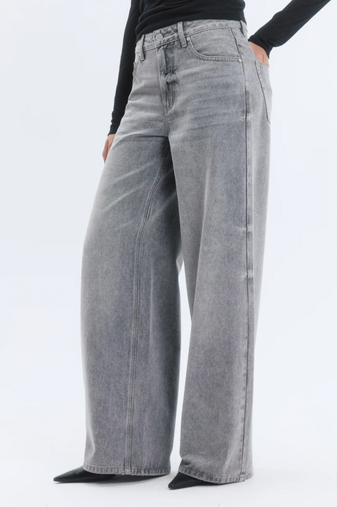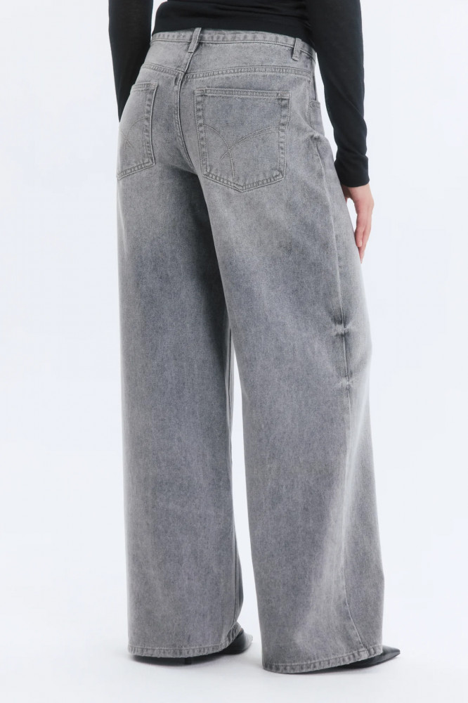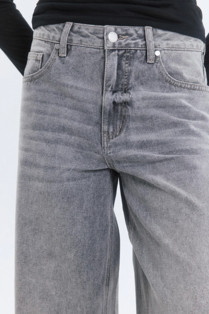 Широкие женские джинсы wide leg из плотного, легкого хлопкового денима с добавлением вискозы. Классическая средняя посадка подчеркивает фигуру и акцентирует внимание на талии. Длинные широкие штанины без декоративных элементов. Два кармана с отрезным бочком спереди, два задних накладных кармана, один кармашек для мелочи. Шлевки для ремня, застежка на молнию и пуговицу. Металлические заклепки на карманах спереди. Голубые, синие и серые джинсы с трендовым вареным эффектом из новой осенней коллекции. Широкие джинсы багги с классической посадкой для самых стильных повседневных и уличных луков с расслабленным оверсайз-верхом. Создавай самые удобные и привлекательные летние аутфиты на каждый день с этими трендовыми джинсами-трубами, которые составят идеальную основу твоего гардероба. Джинсы в спокойных оттенках подойдут для образов в школу, университет или офис.