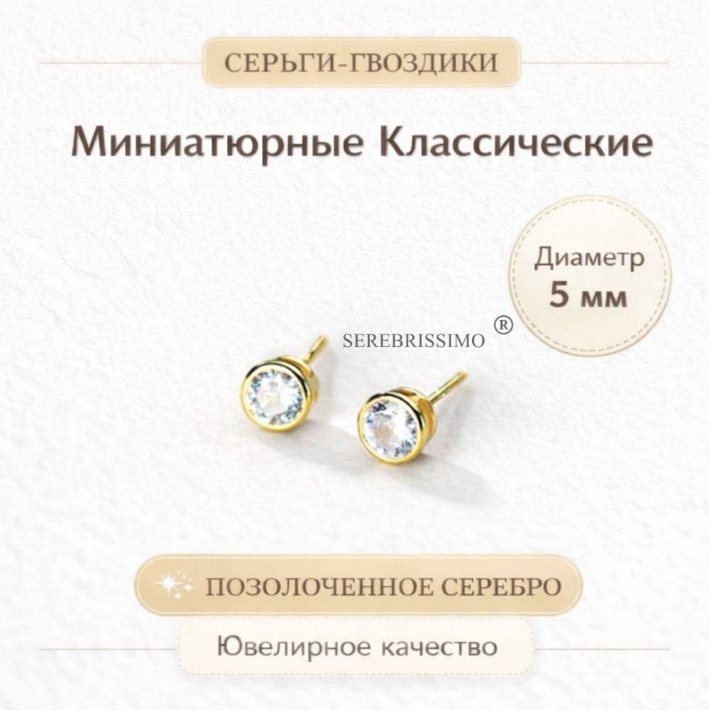 Serebrissimo Серьги-гвоздики из позолоченного серебра