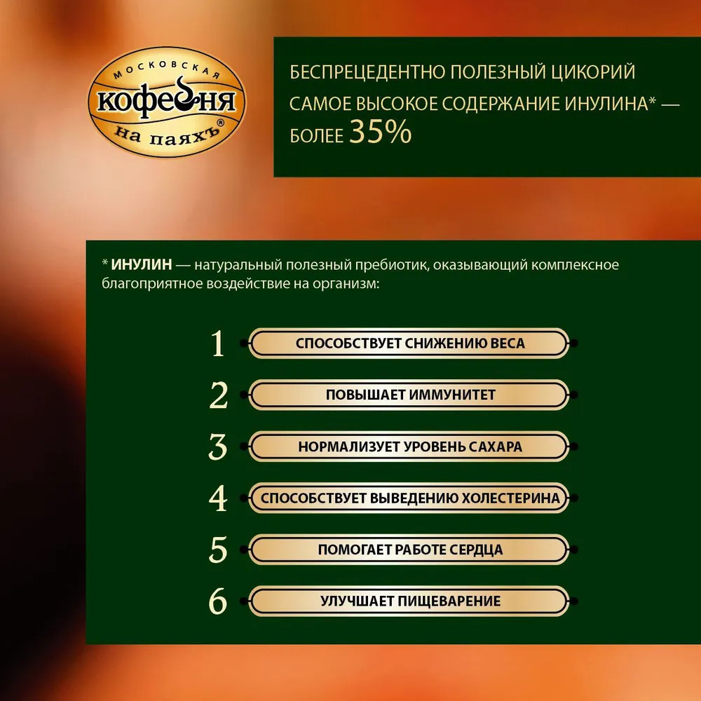 Кому нельзя кофе, но очень хочется - данный цикорий отличная альтернатива: насыщенный аромат, приятный вкус, очень похож на кофе. Рекомендую 👌