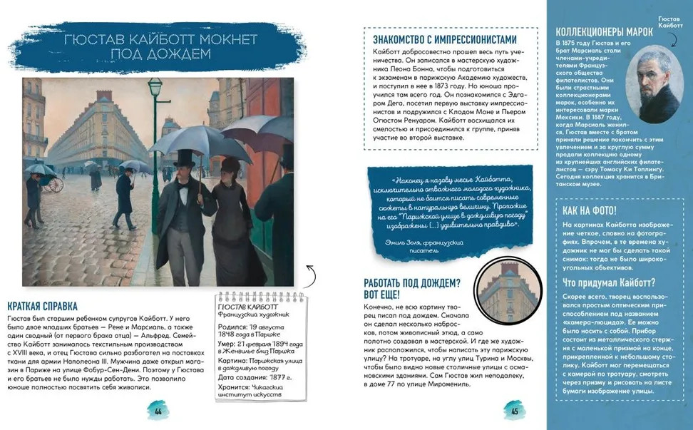 💳 Оплатить за товар можно при получении 🇰🇿 Есть бесплатная доставка по Казахстану от 1 дня 🎁 Копите бонусы с каждой покупки Серия: Детская история искусств Почему импрессионистов так назвали? Создавали ли творцы свои картины только на пленэре? Были ли среди импрессионистов женщины? Какие сюжеты нравились художникам? На страницах этой книги вы увидите и самые знаменитые картины, и скульптуры импрессионистов. А еще прочитаете про зарождение импрессионизма, познакомитесь с самыми известными творцами, их биографиями и особенностями стиля, рассмотрите ключевые образы произведений, а также узнаете, чем техника живописи импрессионистов отличалась от приемов работы академических художников. Эта книга — проводник в мир искусства. Благодаря ей вы станете знатоком одного из крупнейших течений в живописи XIX–XX веков! |