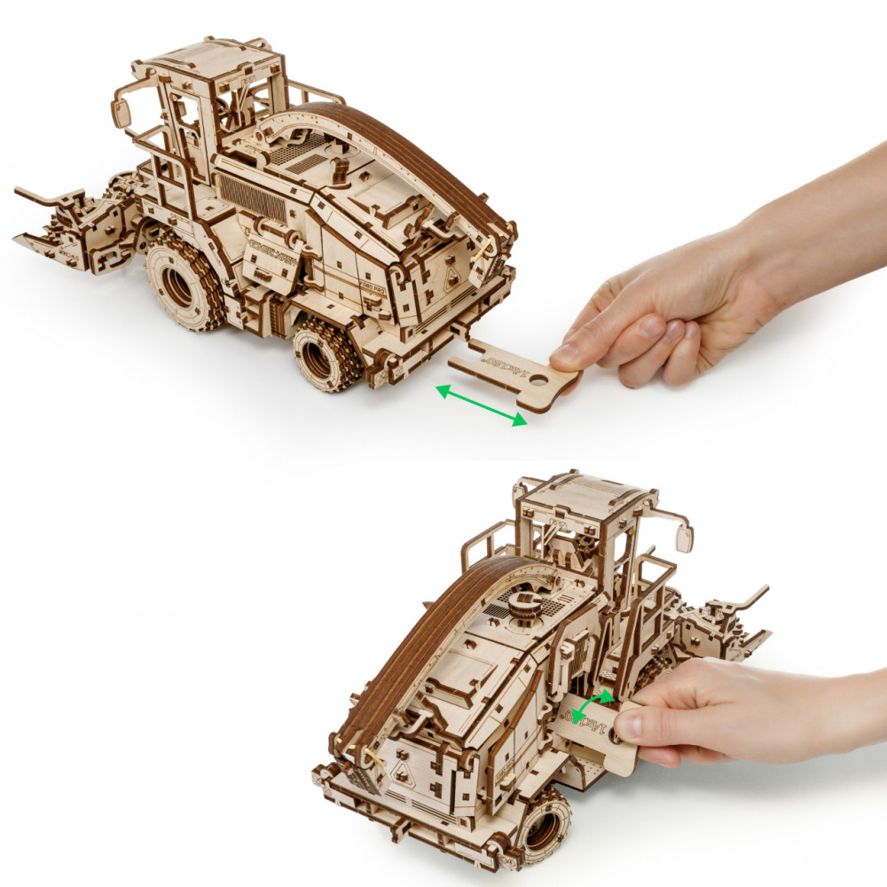 EWA Eco-Wood-Аrt Модель сборная механическая «Кормоуборочный комбайн FS80 PRO»В данный момент этот товар отсутствует в продаже. Возможно, у нас найдется аналогичный или похожий товар здесь. Деревянная механическая сборная модель EWA Комбайн с жаткой FS80 PRO для грубостебельных культур с мотором — отличный подарок на любой праздник для ребенка, и для взрослого человека, который увлекается конструированием и моделированием. Эта потрясающая заводная модель из дерева идеально имитирует работу настоящего комбайна. Благодаря пружинному двигателю он имеет большой запас хода и движется как будто настоящий. Механический конструктор Комбайн оснащен поворотным устройством, позволяющим ему легко маневрировать. А съемная, активная жатка делает эту модель ещё более реалистичной и функциональной. У конструктора из дерева есть рычаг стопора, заводной мотор, подвижные поворотные детали, открывается багажник, вращаются колеса, отдельный ключ для завода механизма. Собирается без клея. |