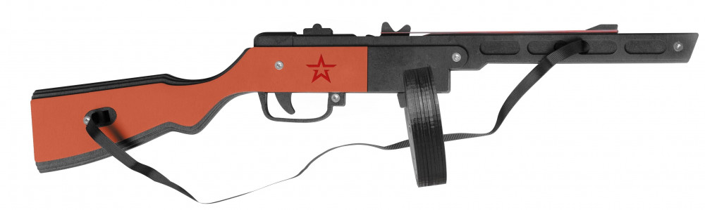 Армия России Резинкострел «ППШ»В данный момент этот товар отсутствует в продаже. Возможно, у нас найдется аналогичный или похожий товар здесь. Игрушечный макет ручного пулемета, которая стреляет резинками в автоматическом режиме. Этот резинкострел копирует ППШ — самый легендарный советский автомат Великой Отечественной войны. Спасший немало солдатских и офицерских жизней, за что получил благодарное прозвище «папаша». И если вы еще не в курсе, что это за модная игрушка такая, расскажем. Детали из дерева покрыты слоем экологичной акриловой краски на водной основе. Игрушка долго сохранит свой яркий вид. Внешне игрушечная ППШ полностью копирует свой боевой оригинал. «Барабан» отстегивается. Как стрелять? Зацепите резинку за мушку и натяните на дальний выступ звездчатого колесика. Прокрутите колесико на себя, до щелчка. Зарядите вторую резинку и повторите действия от 10 до 25 раз. Наведите винтовку, глядя в макет снайперского прицела. Стреляйте до 25 раз подряд. Дальность стрельбы до 10 метров. Резинки не способны разбить стекло, зеркало, телевизор. |