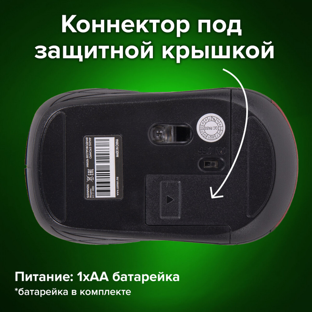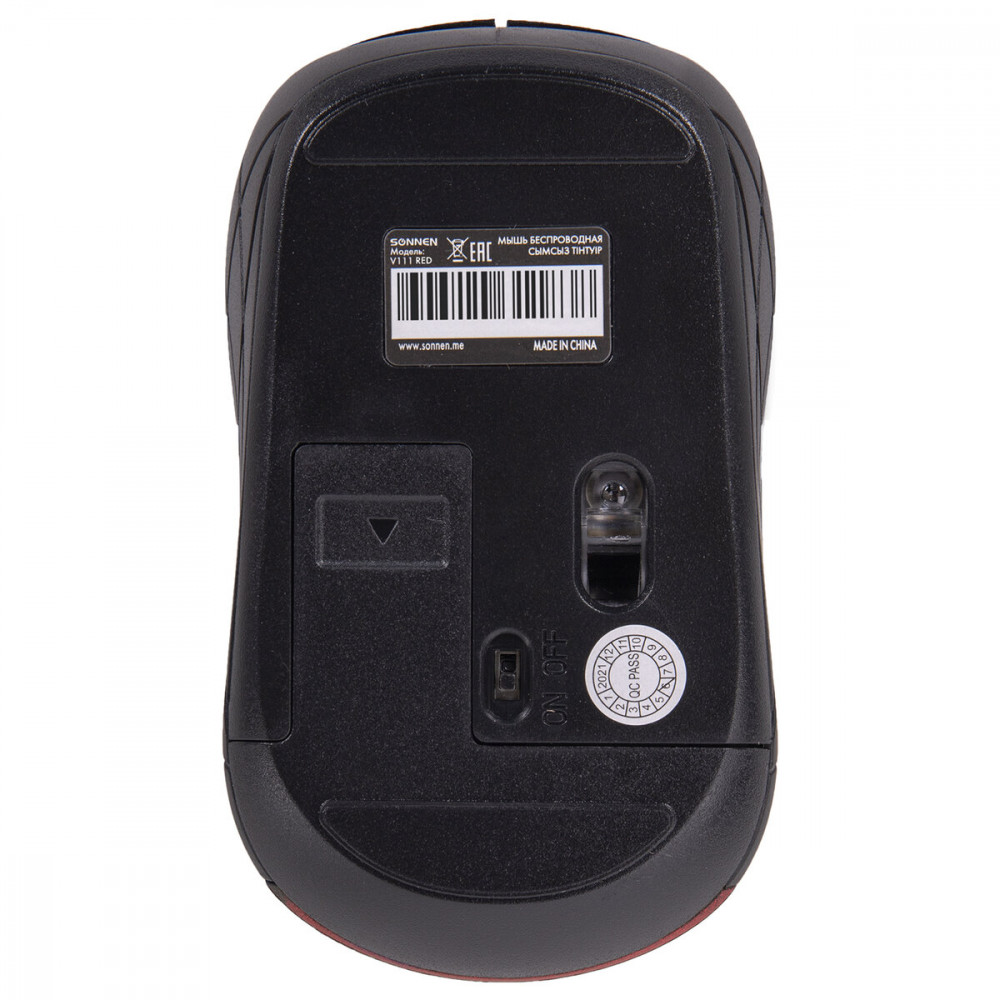 Беспроводная мышь SONNEN V-111 обладает возможностью смены разрешения оптического сенсора, что позволяет заниматься как интернет-серфингом, так и обработкой фотографий, где от мыши требуется более точная работа. Устройство имеет 4 кнопки: левая кнопка мыши; правая кнопка мыши; кнопка переключения разрешения; колесо-кнопка. Увеличенный радиус действия беспроводной связи до 10 м обеспечивает большую свободу действий. 3 режима разрешения мыши 800-1200-1600 dpi переключаются специальной кнопкой и позволяют быстро подстроить скорость курсора мышки под требуемые задачи. Удобная симметричная форма подходит для работы любой рукой. Компьютерная мышь Sonnen — это невероятный комфорт и легкость в эксплуатации в сочетании с интересным дизайном. Закажите и будьте на шаг впереди!