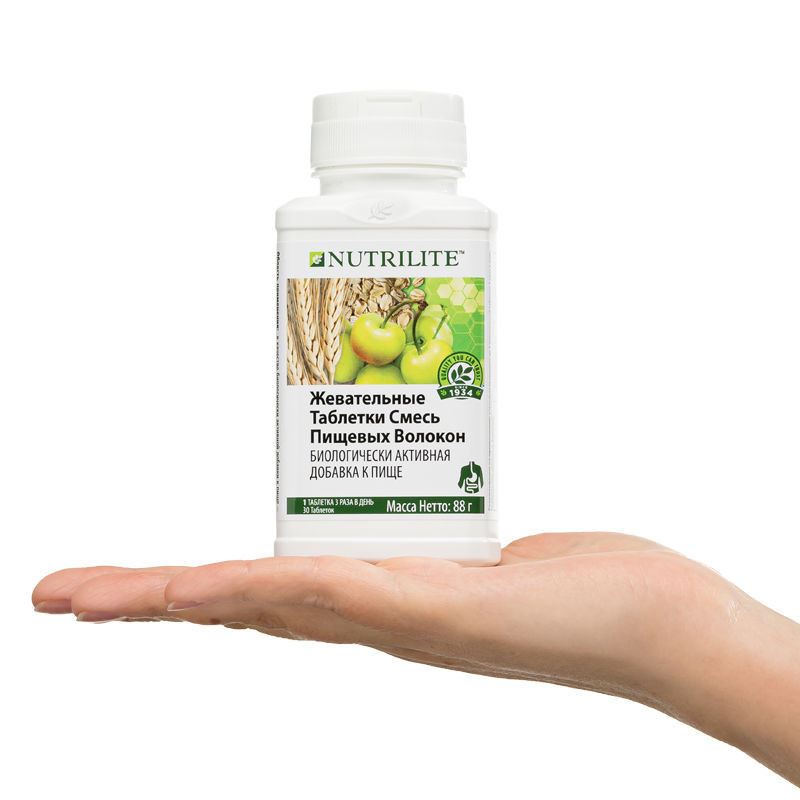 • жевательные таблетки смесь пищевых волокон содержат пищевые волокна (целлюлозу, пектины, лигнины) из 13 различных источников, таких как фруктоолигосахариды и волокна акации, сахарный тростник, овес, вишня ацерола, пшеница, лимоны, соя, кактус опунция, яблоки, горох, ячмень и морковь;