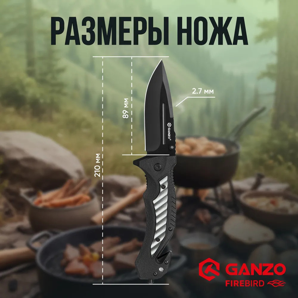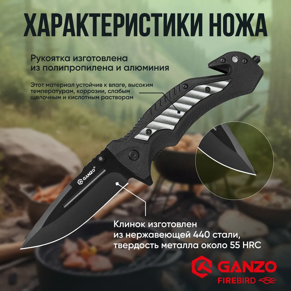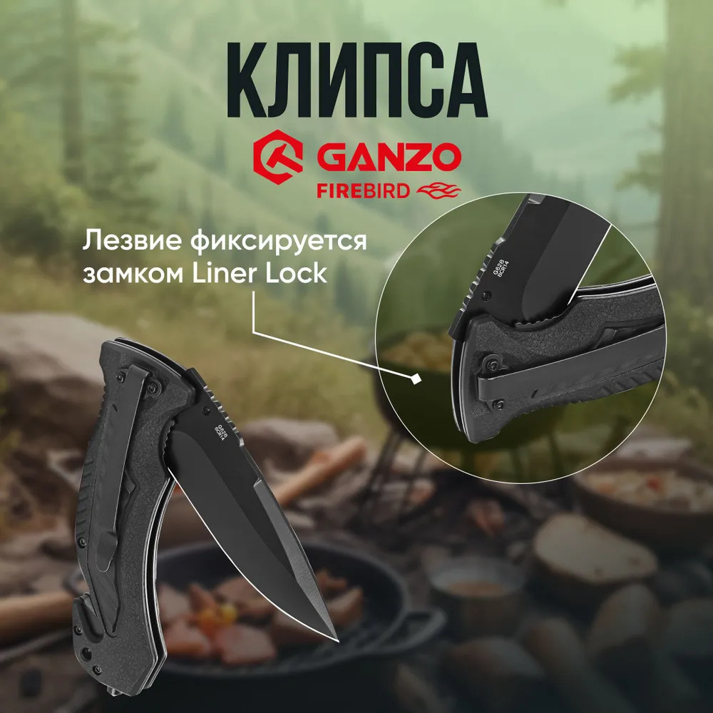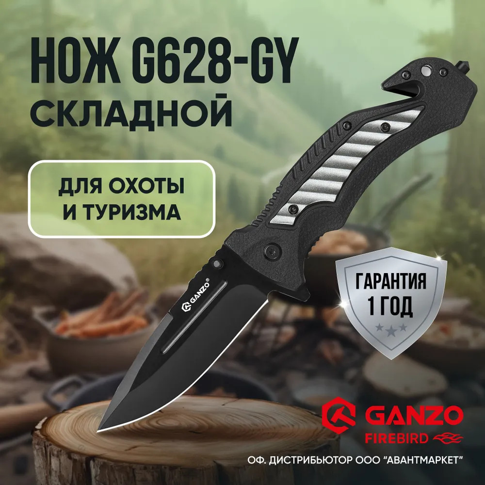 Нож Ganzo G628-GR — это идеальный выбор для туристических путешествий, активного отдыха и повседневного использования. В первую очередь в глаза бросается необычный дизайн. Ломаные линии и черный цвет рукояти со вставкой фисташкового цвета придают складному ножу Ganzo G628-GR футуристичный вид. Клинок модели выполнен из высококачественной стали 440 серии с твердостью ±55 HRC. Сплав с высоким содержанием углерода и хрома известен своей прочностью и устойчивостью к коррозии, поэтому нож будет долго сохранять остроту режущей кромки. Профиль клинка типа Drop Point и прямая заточка обеспечивают отличные режущие характеристики и универсальность применения. Рукоять изготовлена из полипропилена (PP) и алюминия, что придает ей прочность и легкость. Полипропилен хорошо сопротивляется влаге, высоким температурам, коррозии и слабым щелочным и кислотным растворам. В рукоять также интегрированы стропорез и стеклобой, которые могут пригодиться в экстремальных ситуациях. Модель может похвастаться не только стильным внешним видом, но и функциональностью и практичностью. Благодаря небольшим размерам и весу нож удобно носить с собой на постоянной основе и использовать в качестве EDC-ножа. В сложенном виде длина составляет 12,1 см, а весит он 138 грамм. Клипса, расположенная ближе к основанию клинка, позволяет надежно фиксировать нож при переноске. Открывается Ganzo G628-GR двумя способами: с помощью флиппера или шпенька, который расположен на левой стороне клинка. Нож оснащен замком Liner Lock, который обеспечивает уверенную фиксацию клинка в открытом положении и предотвращает его случайное закрытие. Упор для пальца на обухе клинка повышает контроль и удобство при выполнении силовых работ.