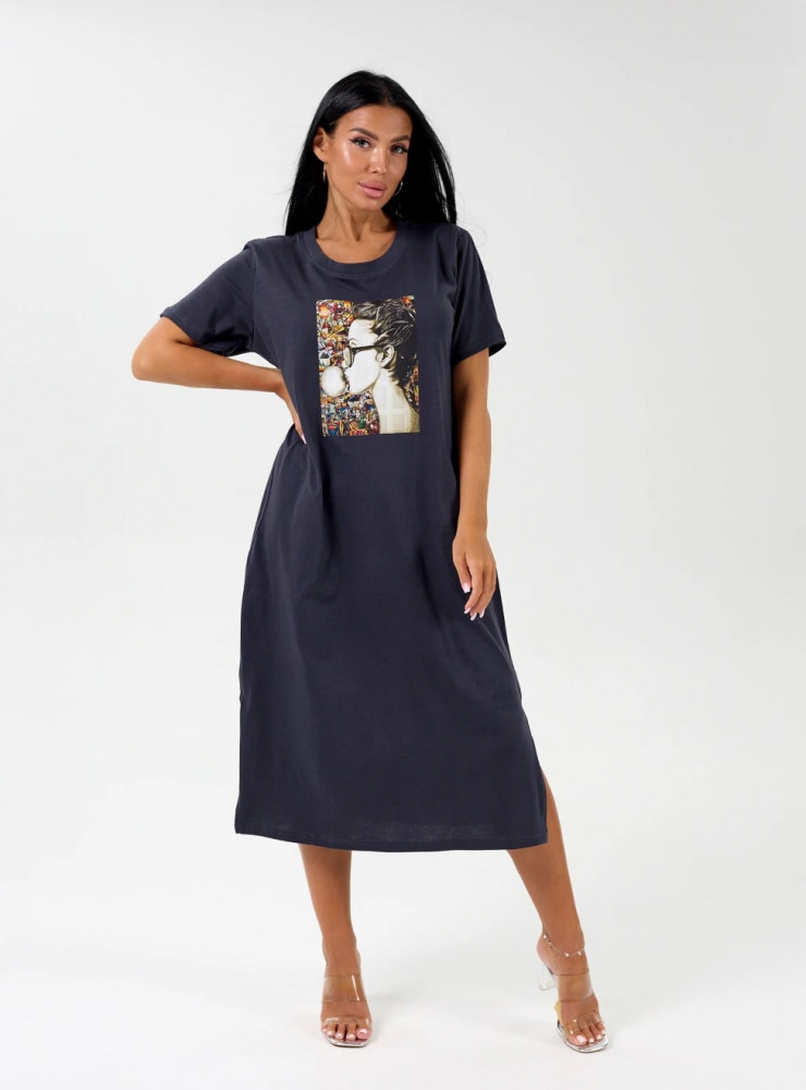 очень понравилось платье. Цвет интересный, между темно- синим и графит, комфортная телу ткань, сидит отлично, стройнит