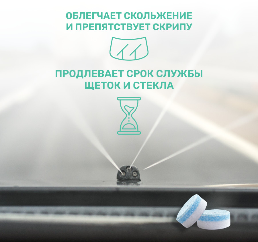 Преимущества использования концентрата стеклоомывателя в таблетках включают:
