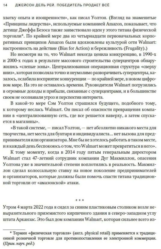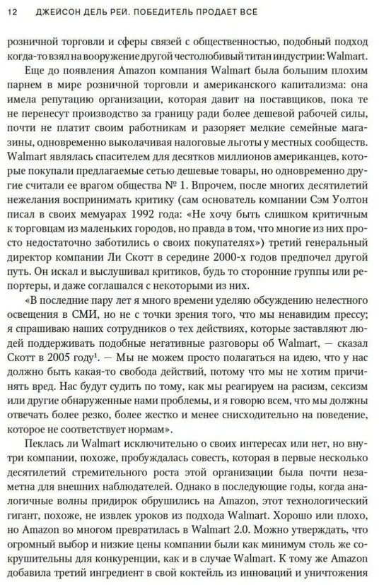 💳 Оплатить за товар можно при получении 🇰🇿 Есть бесплатная доставка по Казахстану от 1 дня 🎁 Копите бонусы с каждой покупки В течение многих лет компании Walmart и Amazon работали в разных сферах: одна была крупнейшим физическим ретейлером, другая — онлайн-гигантом. Но в 2016 году Walmart агрессивно вторглась в мир электронной коммерции, а Amazon сделала ставку на физическую розничную торговлю. Это противостояние вылилось в беспощадную схватку за власть, в которой каждый титан пытается уничтожить другого, чтобы стать крупнейшим омниканальным ретейлером — «продавцом всего» — в мире. Мелкий бизнес и рядовые потребители сталкиваются с негативными последствиями этой борьбы: сокращаются возможности для справедливого ценообразования, семейные магазины разоряются, а миллионы работников вынуждены выполнять сложную, порой опасную работу за мизерную плату. Известный журналист Джейсон Дель Рей расследует главный бизнес-конфликт нашего времени, используя ценную инсайдерскую информацию и свидетельства самих участников конфликта. Книга является ключом к пониманию настоящего и будущего всей мировой розничной торговли. |