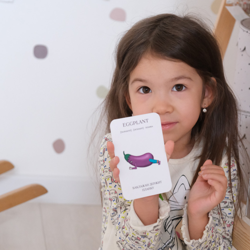Ассоциативтік әдіс негізінде жасалған суреттер баланың сөздерді жаттаусыз, ассоциациялар арқылы жылдам және оңай есте сақтауына көмектеседі. Бұл әдіс білімді ұзақ уақытқа есте сақтауға мүмкіндік береді. Карточкаларды қолдану арқылы бала айына 100-ге дейін сөзді еш қиындықсыз үйрене алады. Карточкалар бастауыш мектеп оқушыларына, сондай-ақ тәрбиешілерге, мұғалімдерге және ағылшын тілін оқып жүрген немесе балаларға үйретіп жүрген кез келген адамға арналған. |