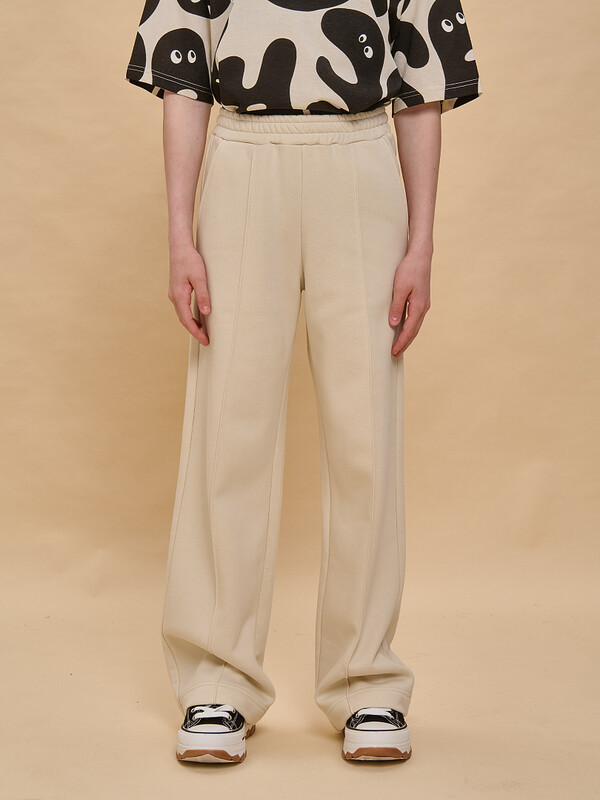 Брюки палаццо для девочки. Актуальные брюки свободного кроя подарят ребёнку комфорт и не будут стеснять движений. Широкая резинка в поясе не давит и не перекручивается. С помощью внутреннего шнура в поясе можно регулировать объём и посадку брюк. По переду застроченные стрелки — модный тренд сезона. По бокам глубокие наклонные карманы. Изделие лаконичного дизайна, без принта. Брюки неприхотливы в уходе. В составе ткани (футер с начёсом) преобладает качественный хлопок — штаны тёплые, мягкие и воздухопроницаемые, дают коже дышать. Благодаря полиэстеру изделие легко стирается, быстро сохнет и сохраняет первоначальную форму в течение долгого времени. Брюки детские выполнены в нескольких универсальных и трендовых цветах — они легко комбинируются с различными футболками, джемперами, толстовками, куртками. Палаццо брюки для девочек дошкольного и младшего школьного возраста, а также девочек-подростков. Брюки широкого кроя подходят для детского сада, прогулок, активного отдыха, спорта, а также для дома.
