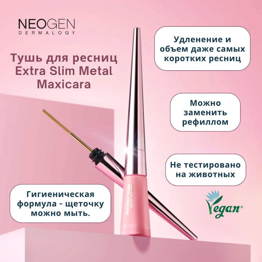Neogen Тушь для ресниц «Extra Slim Metal Maxicara», оттенок Черный