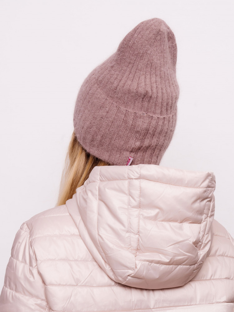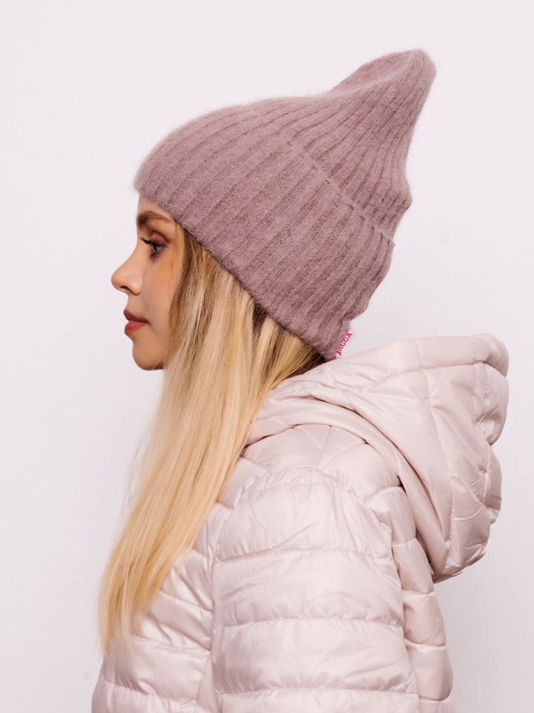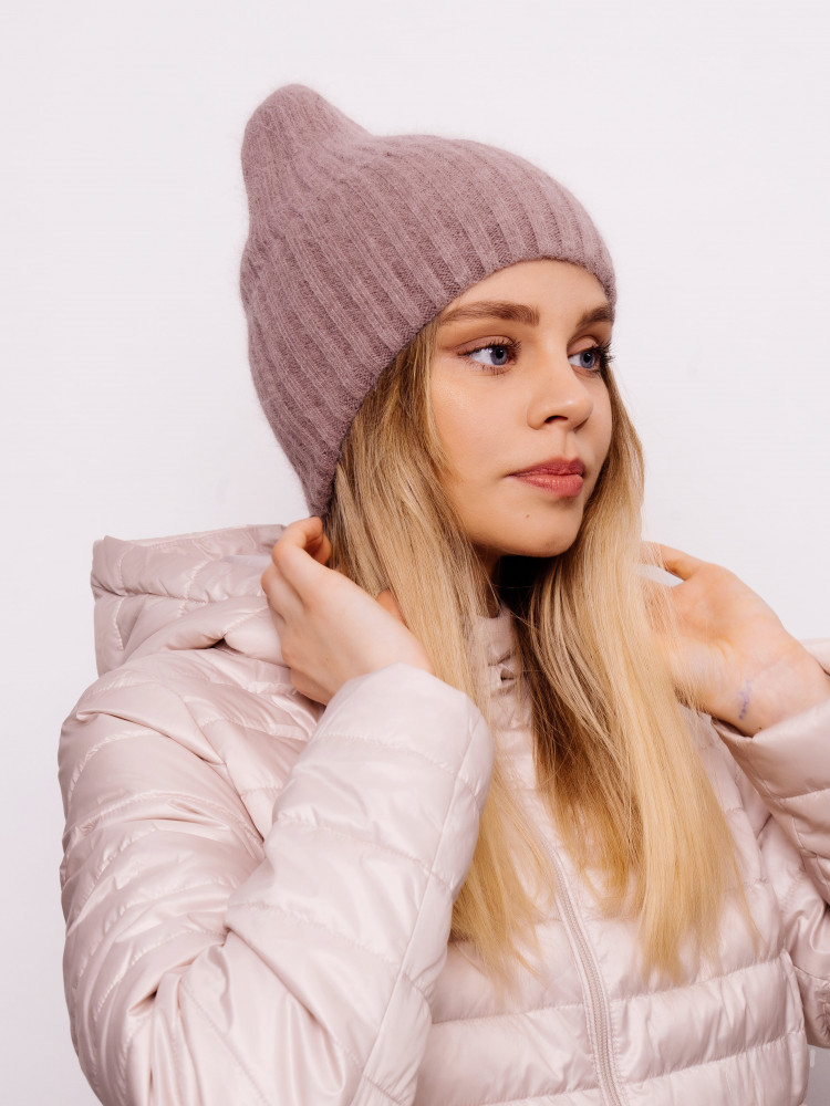 Шапка персикового цвета, очень мягкая и пушистая - на осень самая подходящая.