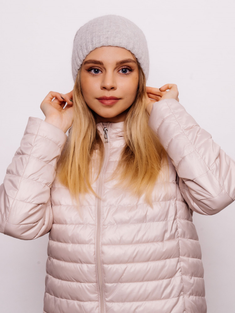 Шапка персикового цвета, очень мягкая и пушистая - на осень самая подходящая.