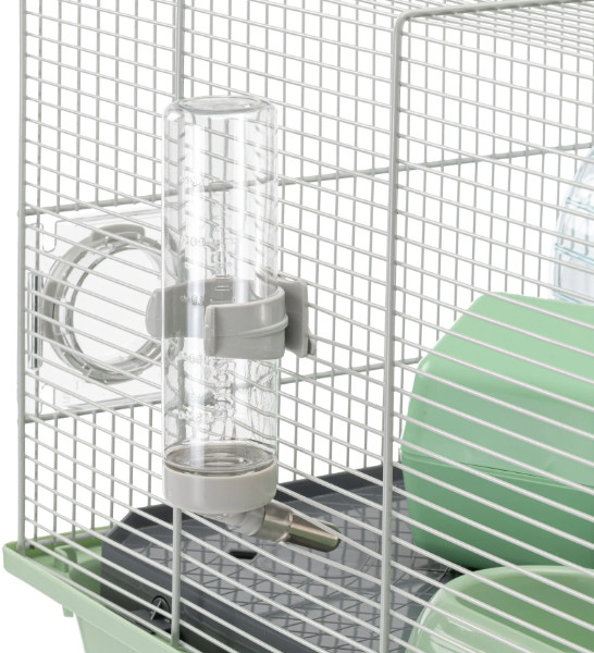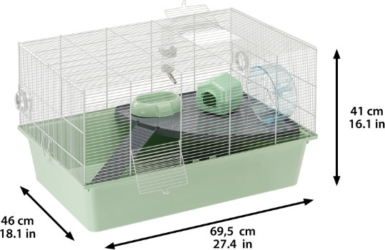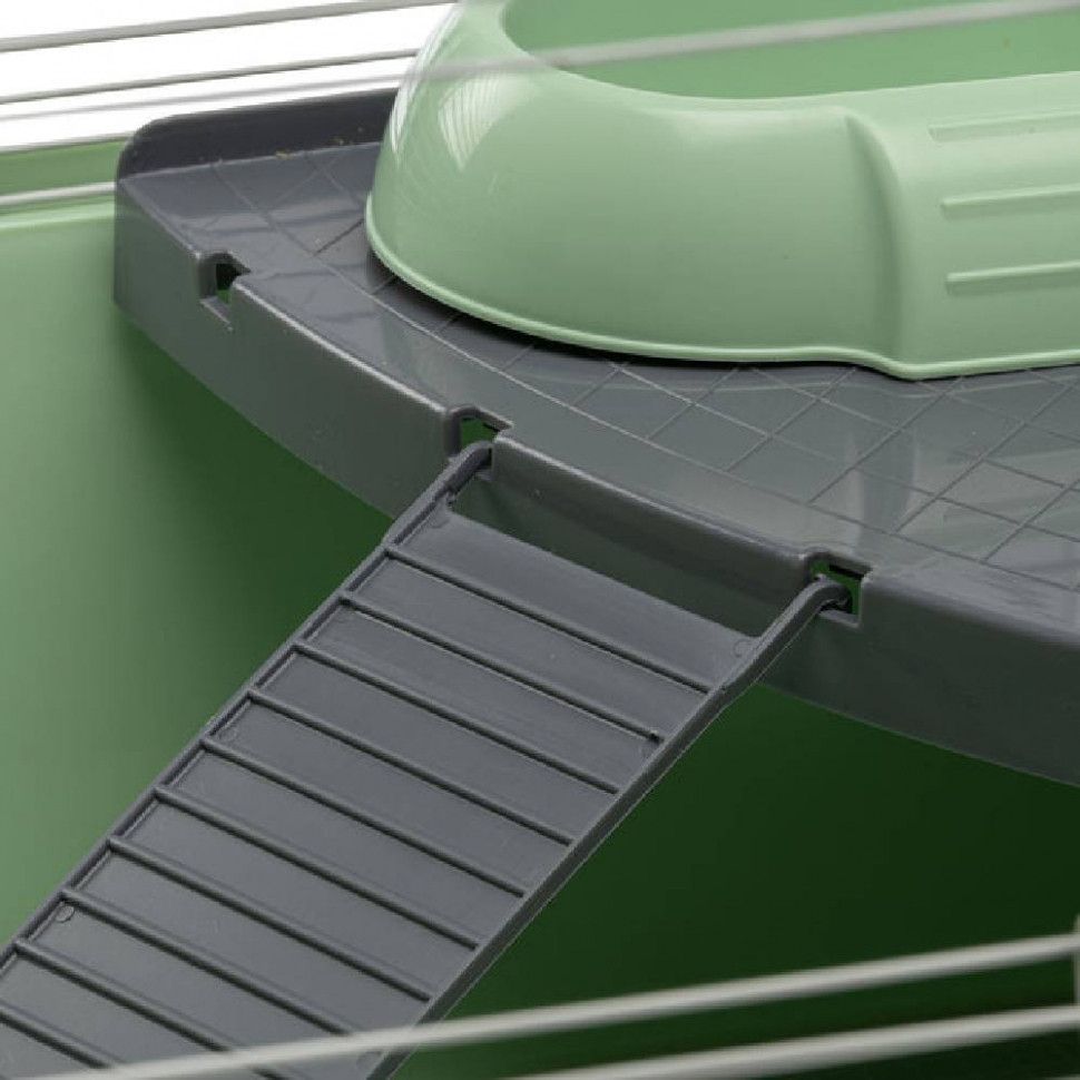 Конструкция модульная, что позволяет соединять клетку с другими модулями, расширяя жизненное пространство животного. Вместительное дно для подстилки и опилок изготовлено из переработанного пластика.