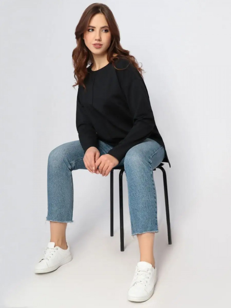 Джемпер из мягкого хлопкового полотна - идеальная повседневная одежда, которой найдет широкое применение любая женщина. Мягкая ткань хорошо пропускает воздух и отличается высокой прочностью. Модель прямого свободного кроя оверсайз больших размеров не стесняет движений. Отличный базовый джемпер подойдет для создания образа как на каждый день (casual), так и для делового стиля. Стильная кофта с округлым воротом пригодится девочкам подросткам, офисным работницам, девушкам - ярым ценителям комфорта и дамам крупного телосложения. Кофте найдется место в подростковом и взрослом женском гардеробе. Базовый трикотажный джемпер с классической горловиной, прикрывает горло, аккуратно подчеркивает грудь и будет активно использоваться в зимний, демисезонный период. Свитер с удлиненной спинкой из качественного трикотажа станет идеальным дополнением спортивного и базового комплекта одежды. Это идеальная база для создания ярких, неповторимых повседневных образов. Джемпер сочетается с джинсами, брюками, юбкой. Элегантная модель отлично впишется в образы как самостоятельный верх, так и в качестве нижнего слоя - под жилет, жакет или кардиган. Свободный, легкий джемпер станет незаменимым в женском гардеробе. Нужно лишь подобрать подходящий цвет (бежевый, черный или хаки). Допустима бережная машинная стирка. Fashion Margo создаёт одежду в духе современных трендов.