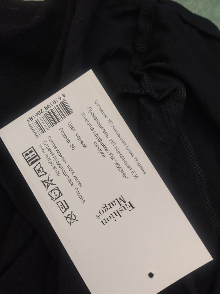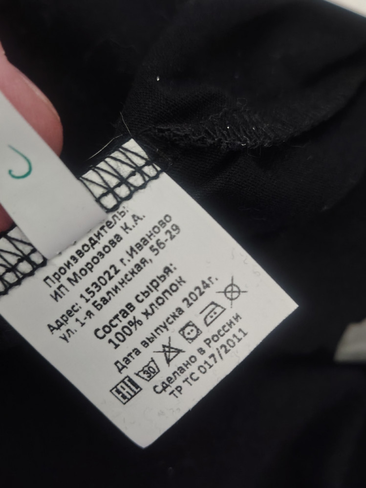 Взяла под тёплый пуховик, чтобы ходить зимой на 3 размера больше специально, чтобы ничего не тянуло. Толщина как у обычной плотной хб футболки. Чистый хлопок. Качественные швы, бирка вшита и отдельно бумажная. Пришёл упакованный в прозрачный зип-пакет. Кстати, обе наклейки с пакета легко удалила вручную, пакет буду использовать ещё 🙂 Удобная на повседневную носку, можно носить как бельё под тёплый свитер.