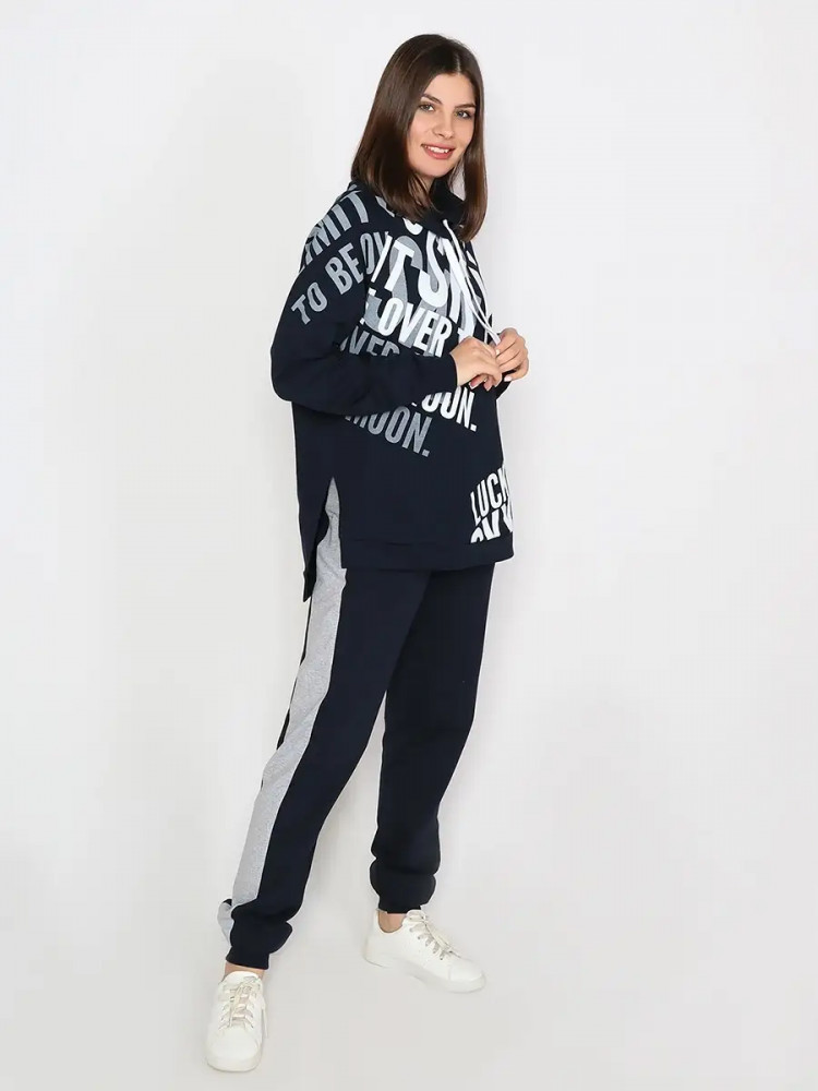 Женский спортивный худи высокого качества с принтом в виде надписей. Джемпер выполнен из 100% хлопка, ткань футер. Крой свободный, с небольшими разрезами по бокам и максимально идеальной посадкой по фигуре. Рукава длинные с притачными манжетами, прикрывают запястья. Воротник хомут, регулируется шнуром - подчеркивает шею и овал лица. Край удлиненный сзади. Подходит для взрослых женщин и юных девушек. Сочетается со спортивными брюками, джинсами и шортами. Универсальная модель, подходит для любого типа фигуры, включая большие размеры. Джемпер, кофта, пуловер являются одними из самых популярных моделей одежды круглый год. Лучший вариант для активного отдыха, спорта, дома и просто повседневной одежды. Широкий размерный ряд позволяет удовлетворить потребности женщин любой комплекции. Создавайте стильные образы, сочетая как с классикой, так и с ультрамодными вещами. Отлично подходит в качестве подарка женщинам любого возраста.*Изделие на фотографиях представлено на модели 44 р-р 173 см рост.