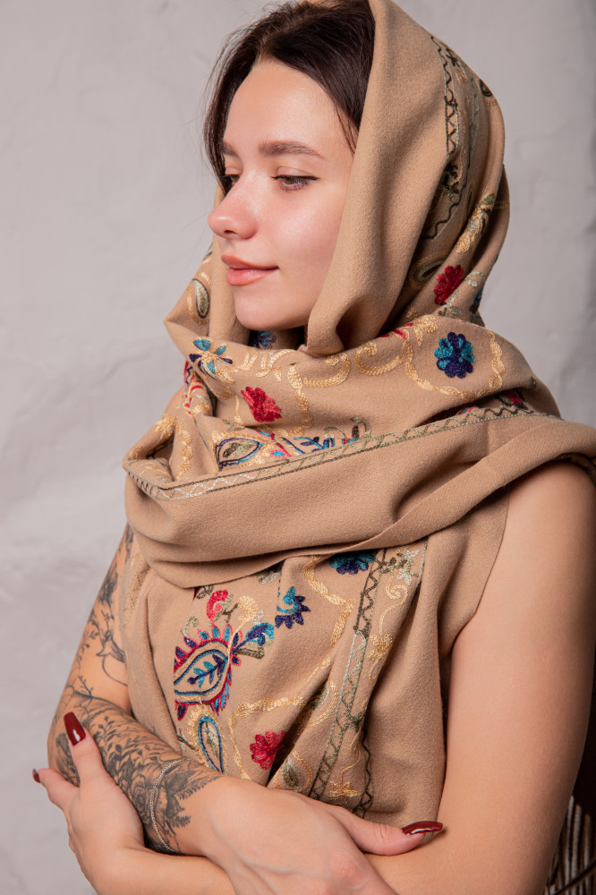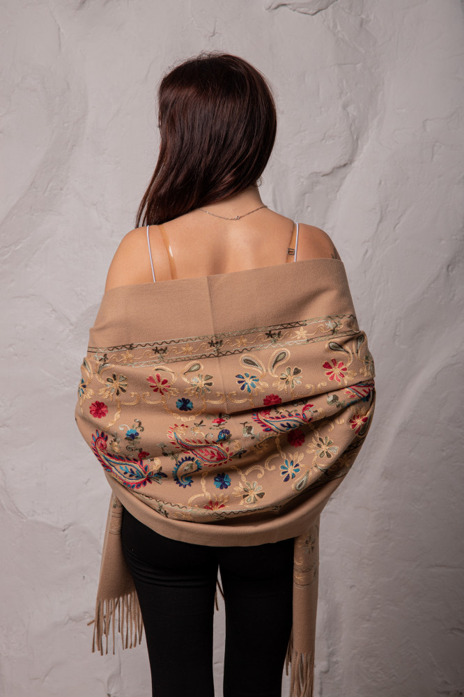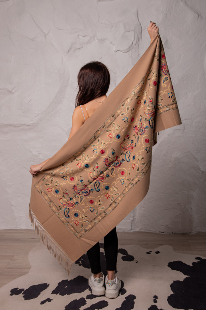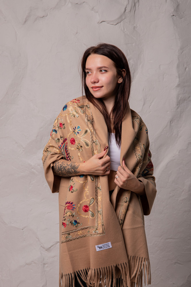 Теплый, мягкий, уютный аксессуар из кашемира. По краю украшен бахромой. Подойдет к любому образу и времени года. Отличный подарок для своих любимых.