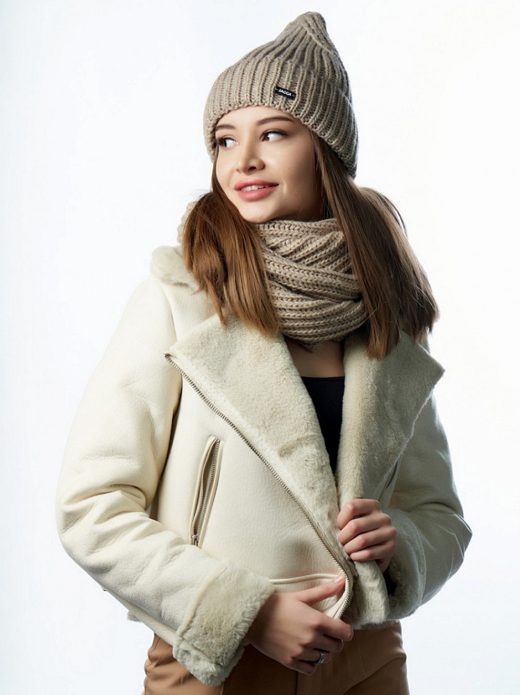 Очень теплая, зимняя шерстяная шапка, внутри подклад. Очень объёмно сидит на голове, мне совсем такое не идёт. Снуд даже не доставала