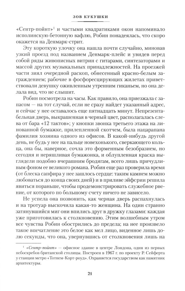 Книга очень хороша, не смотря на то, что сначала нудновата. Конечно же взялся читать только из-за того что узнал, что это моя обожаемая Роулинг)) сюжет очень интересный, большое внимание уделяется деталям, мелочам и Лоооооондоонуууу)) Когда читаешь полностью погружаешься в атмосферу этого города, особенно приятно , когда сам там бывал, как-будто снова оказываешь на этих улочках. Кстати очень грамотно переданы сами персонажи. Британцы достаточно своеобразный, резковатый народец, все действующие лица очень хорошо переданы по тексту на мой взгляд! В общем советую почитать, книга достойна внимания)