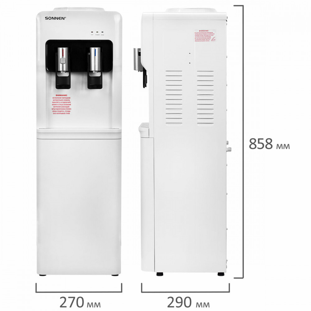 💳 Оплатить за товар можно при получении 🇰🇿 Есть бесплатная доставка по Казахстану от 1 дня 🎁 Копите бонусы с каждой покупки Напольный кулер Sonnen FSE-02A обеспечит питьевой холодной и горячей водой сотрудников и посетителей предприятий, офисов и других организаций. Устройство изготовлено из прочных и безопасных материалов. Корпус выполнен из высококачественного пластика, боковые части корпуса выполнены из металла. Кулер прост в использовании, имеет 2 крана типа «нажим кружкой» для подачи горячей и холодной воды. Вода нагревается с помощью ТЭНа мощностью 420 Вт, что позволяет достичь температуры 95 °С за считаные минуты. Модуль электронного охлаждения мощностью 65 Вт обеспечивает поддержание температуры холодной воды на уровне 15°С. |
