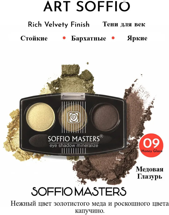 Soffio Masters Палетка теней для век «Rich Velvety Finish», оттенок N9 Медовый глазурь