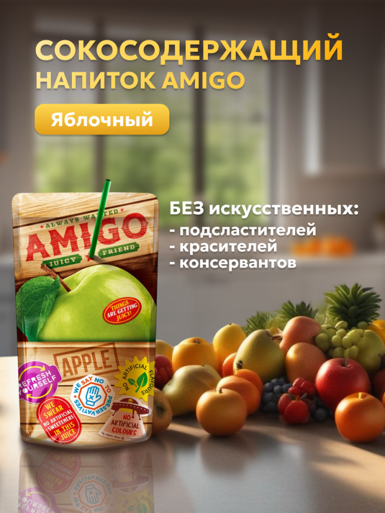 Покупаю эти маленькие соки AMIGO всегода в дорогу. 200 мл идеальный объём, трубочка бумажная, пить удобно